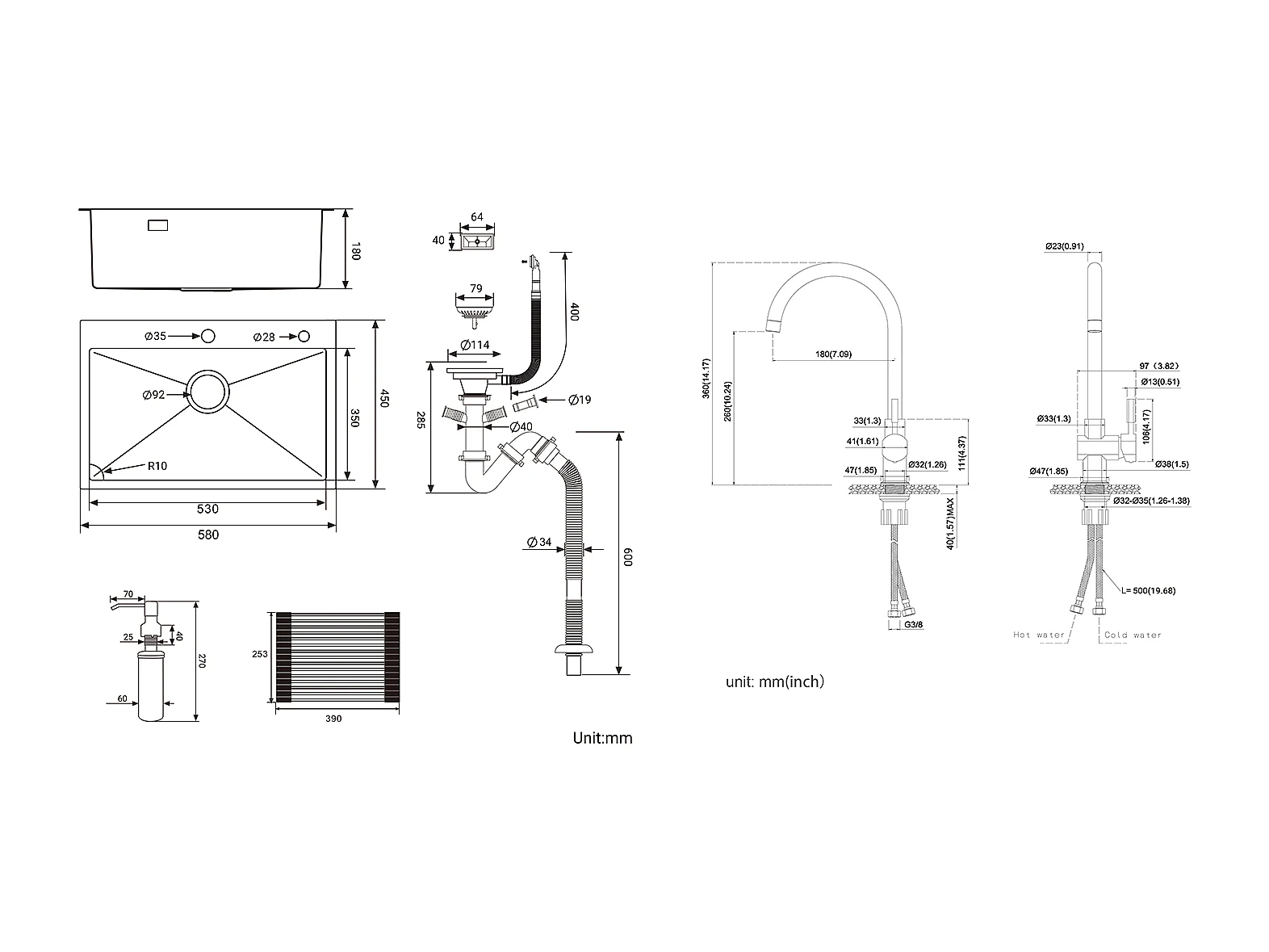 1 Becken Gebürstetes Küchenspülbecken, 58*45*18CM, Aufrollbare Abtropffläche, Seifenspender + 360° schwenkbarer Chrom-Küchenhahn Kalt-/Warmwasser