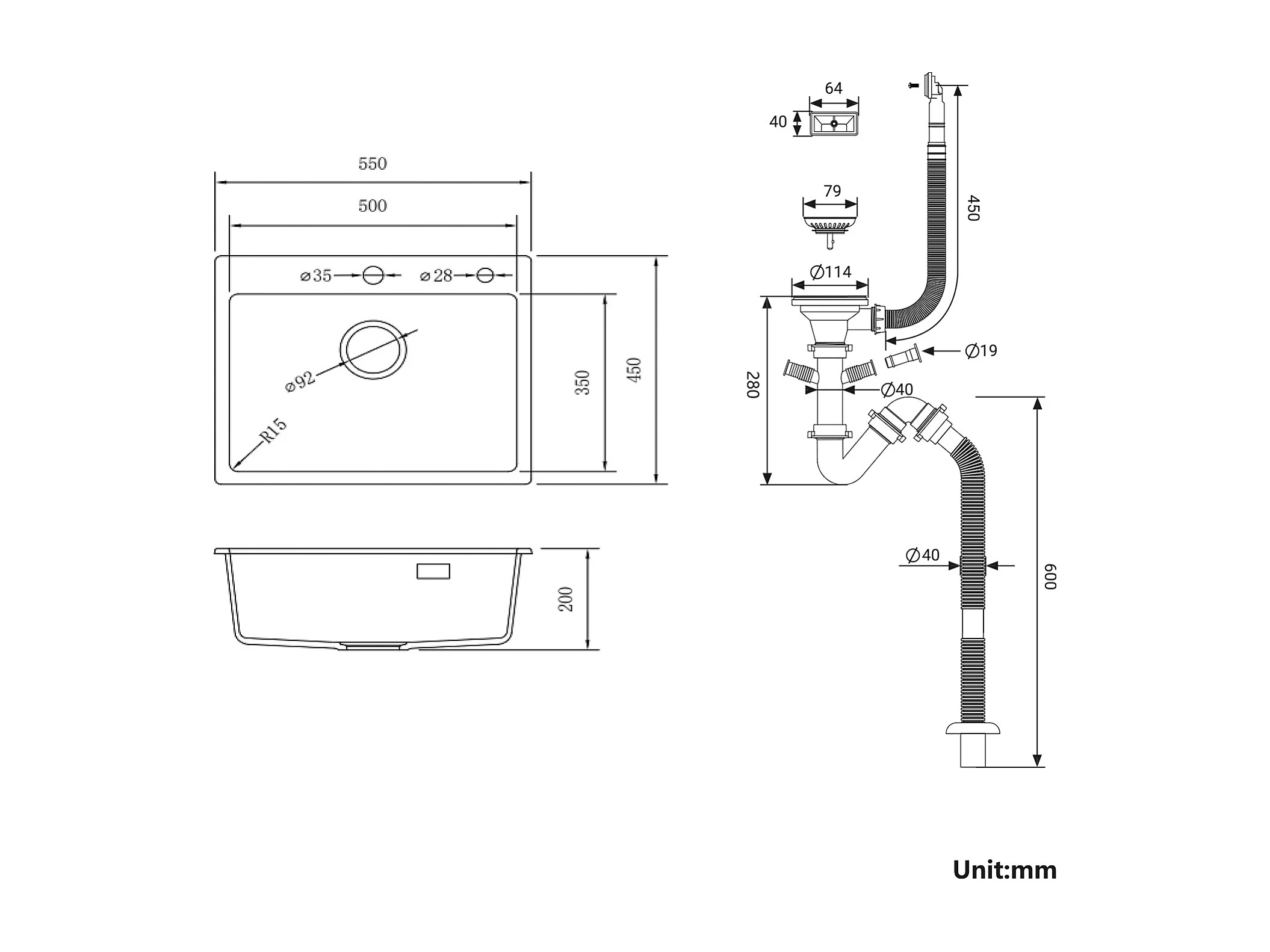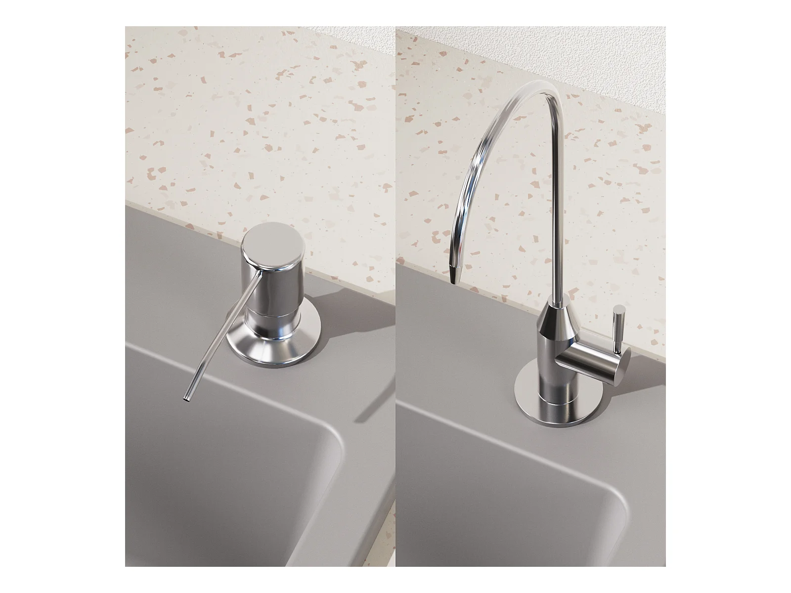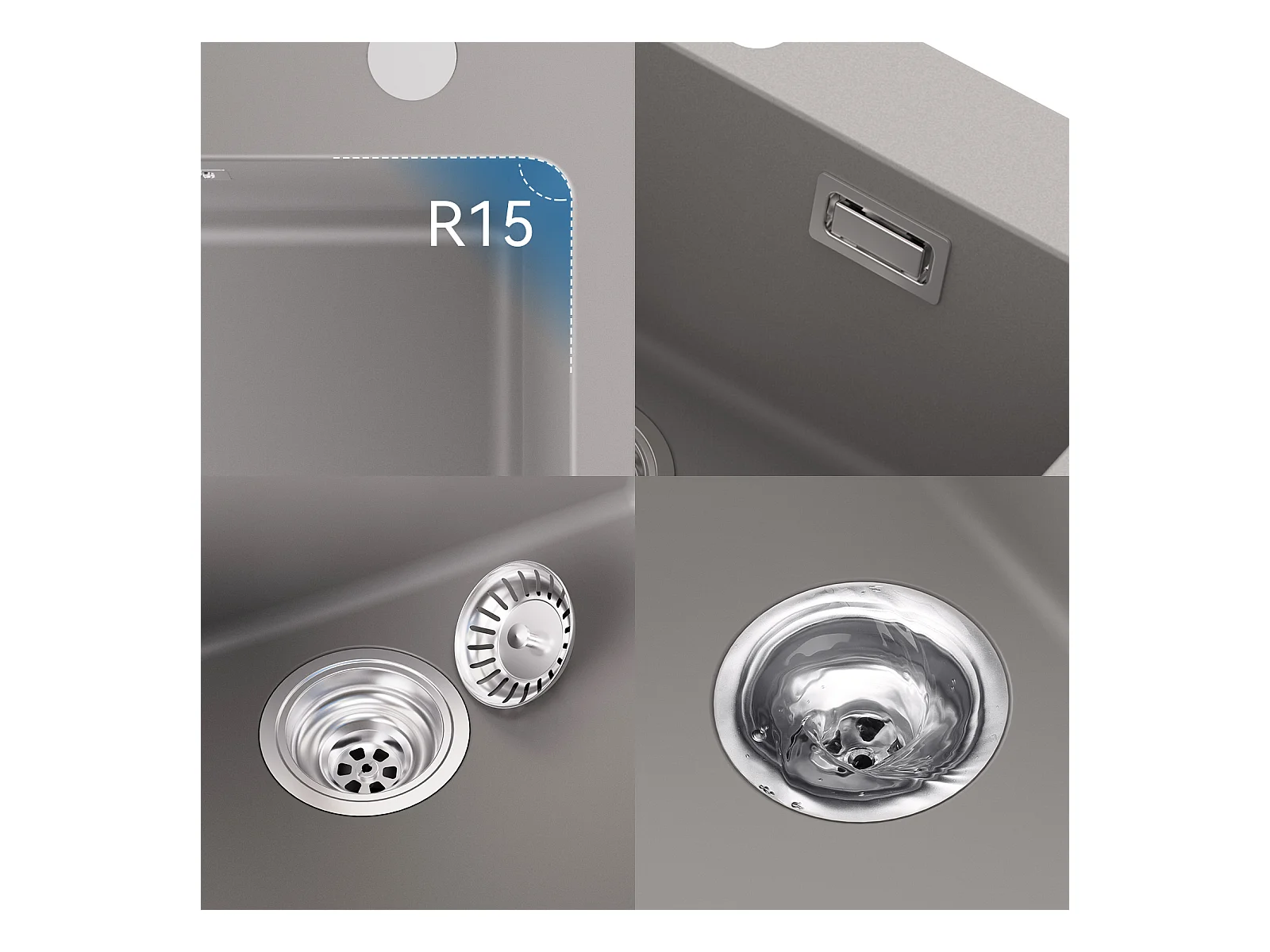 1 Becken Granit-Küchenspüle, 55*45*20cm, Ablaufgarnitur, grau + Küchenmischbatterie mit ausziehbarer Brause, 2 Modi, heißes/kaltes Wasser, gebürstet