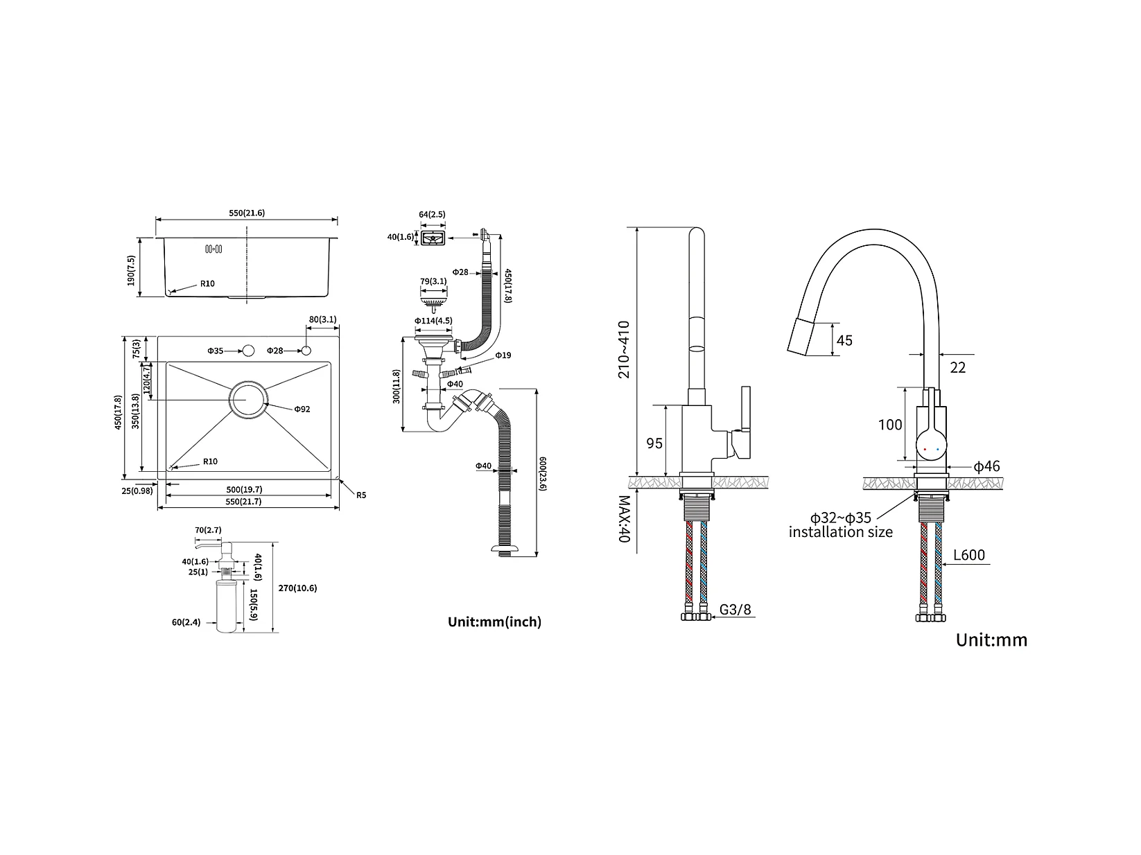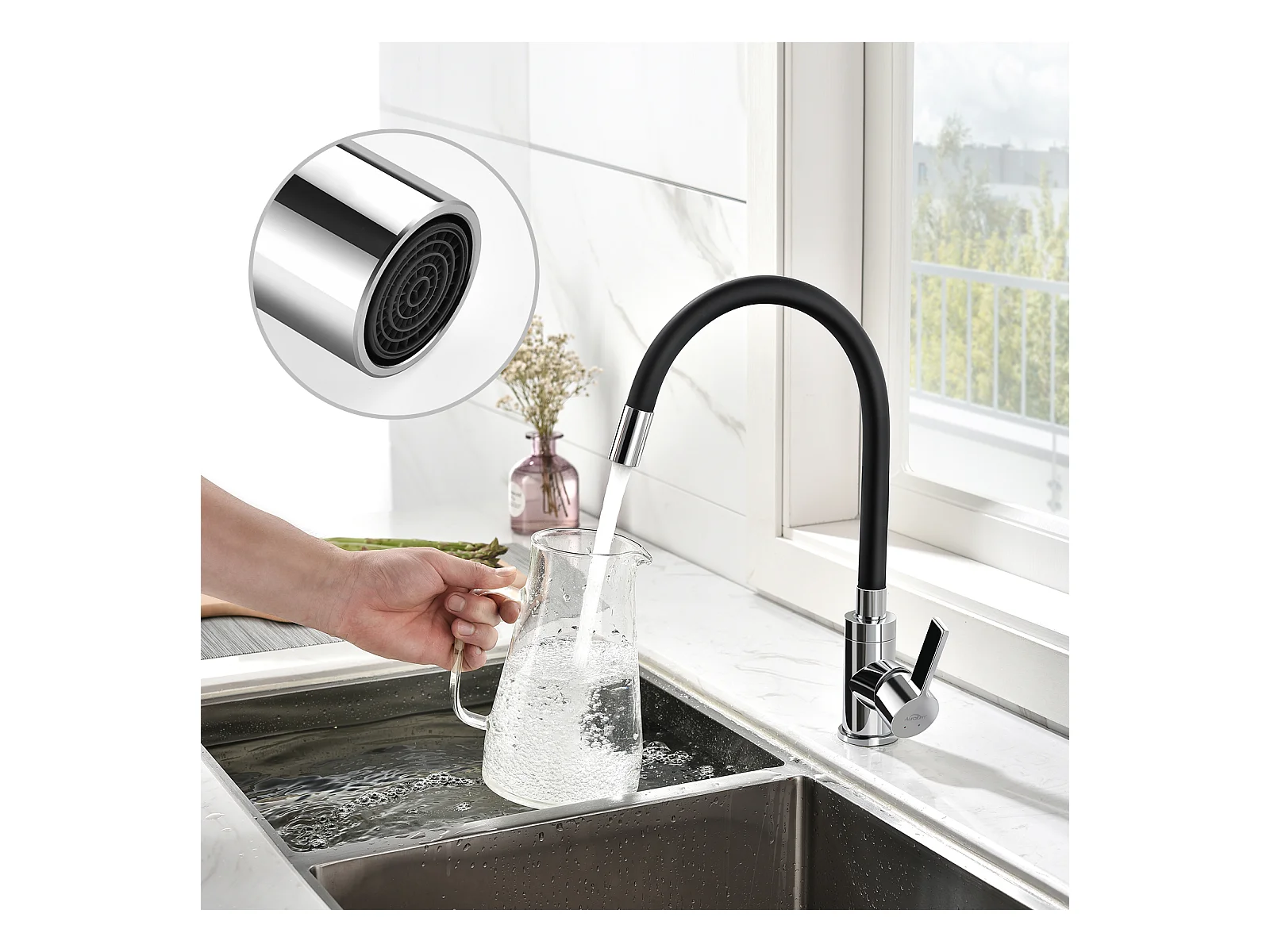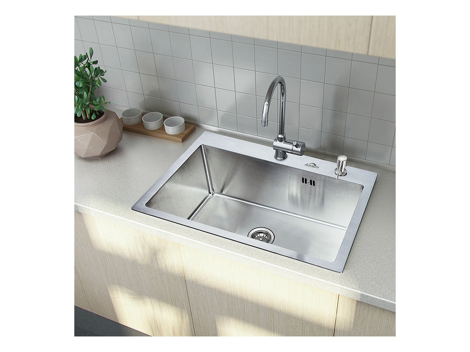 1 Becken Küchenspüle 55*45CM Einbau- und Aufsatzspüle mit Seifenspender + flexiblem Küchenhahn mit hohem Schwenkauslauf