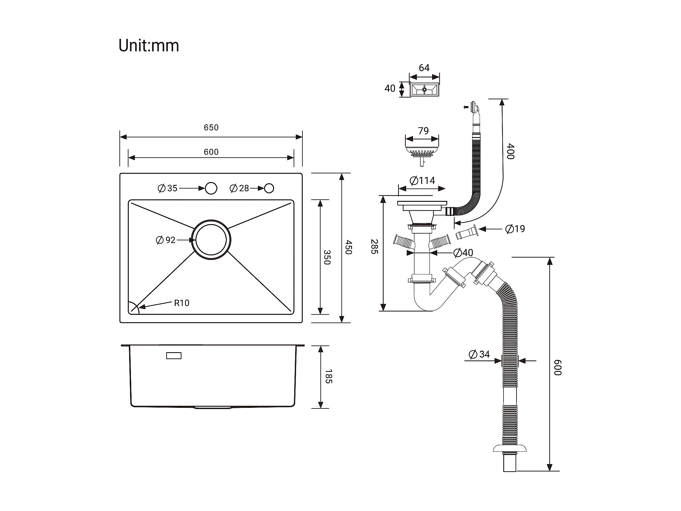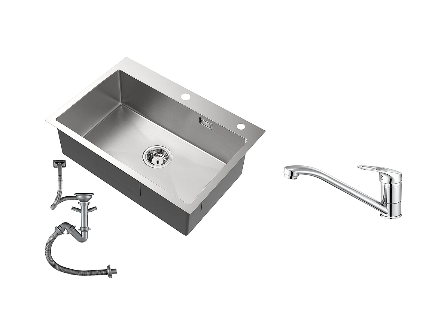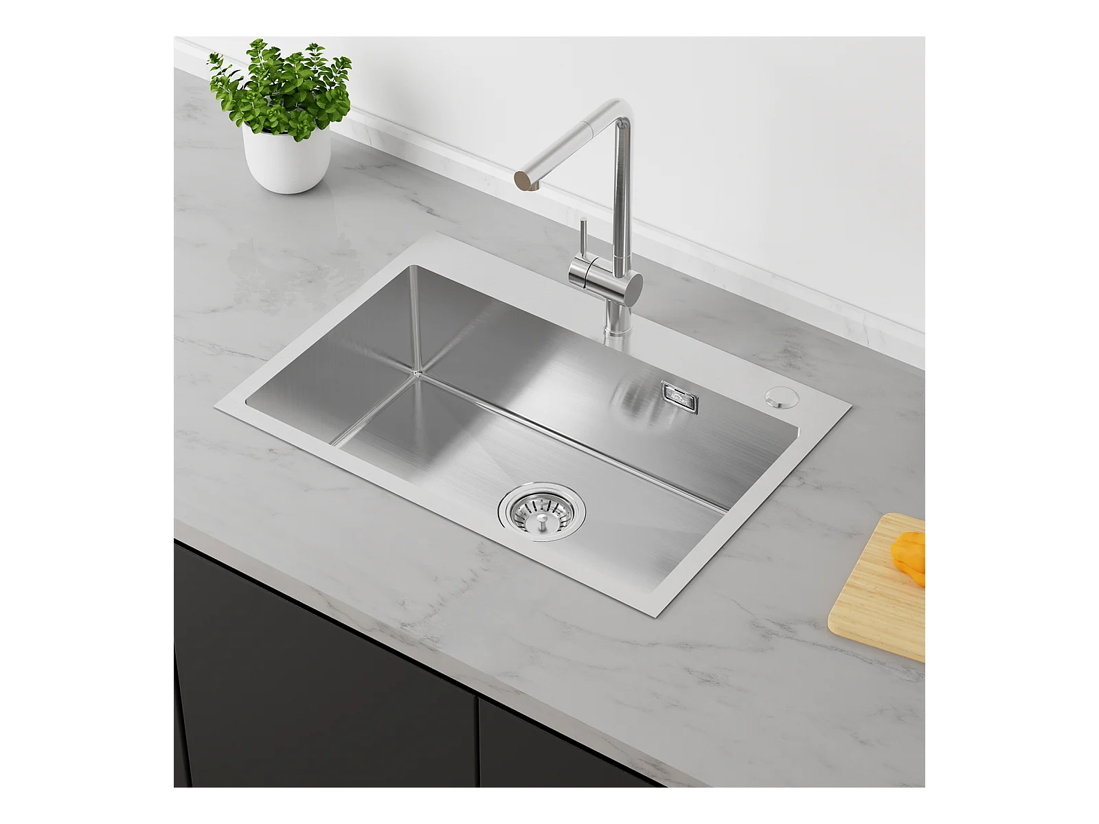 1 Becken Küchenspüle aus gebürstetem Edelstahl 65x45CM, Einbau-/Aufputzmontage + Küchenarmatur, 360° schwenkbar, Warm-/Kaltwasser, Messing, Chrom