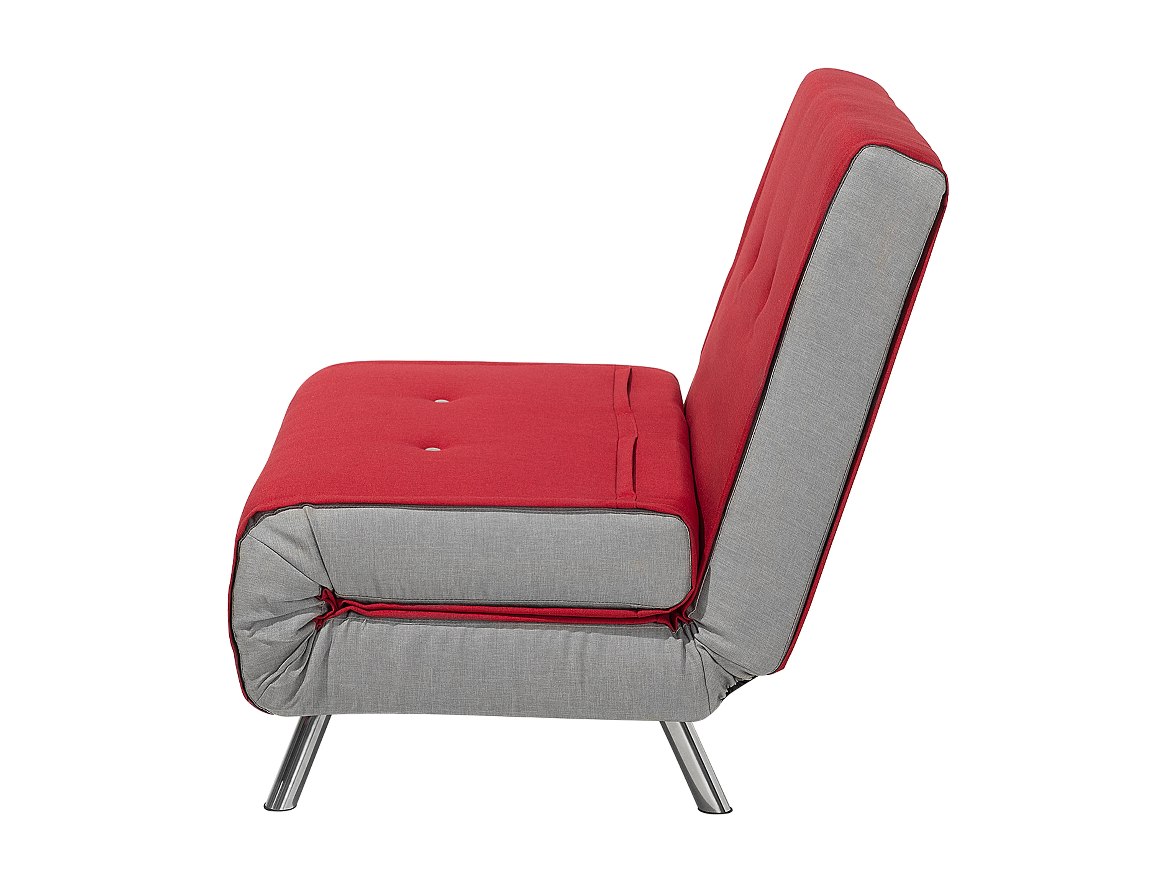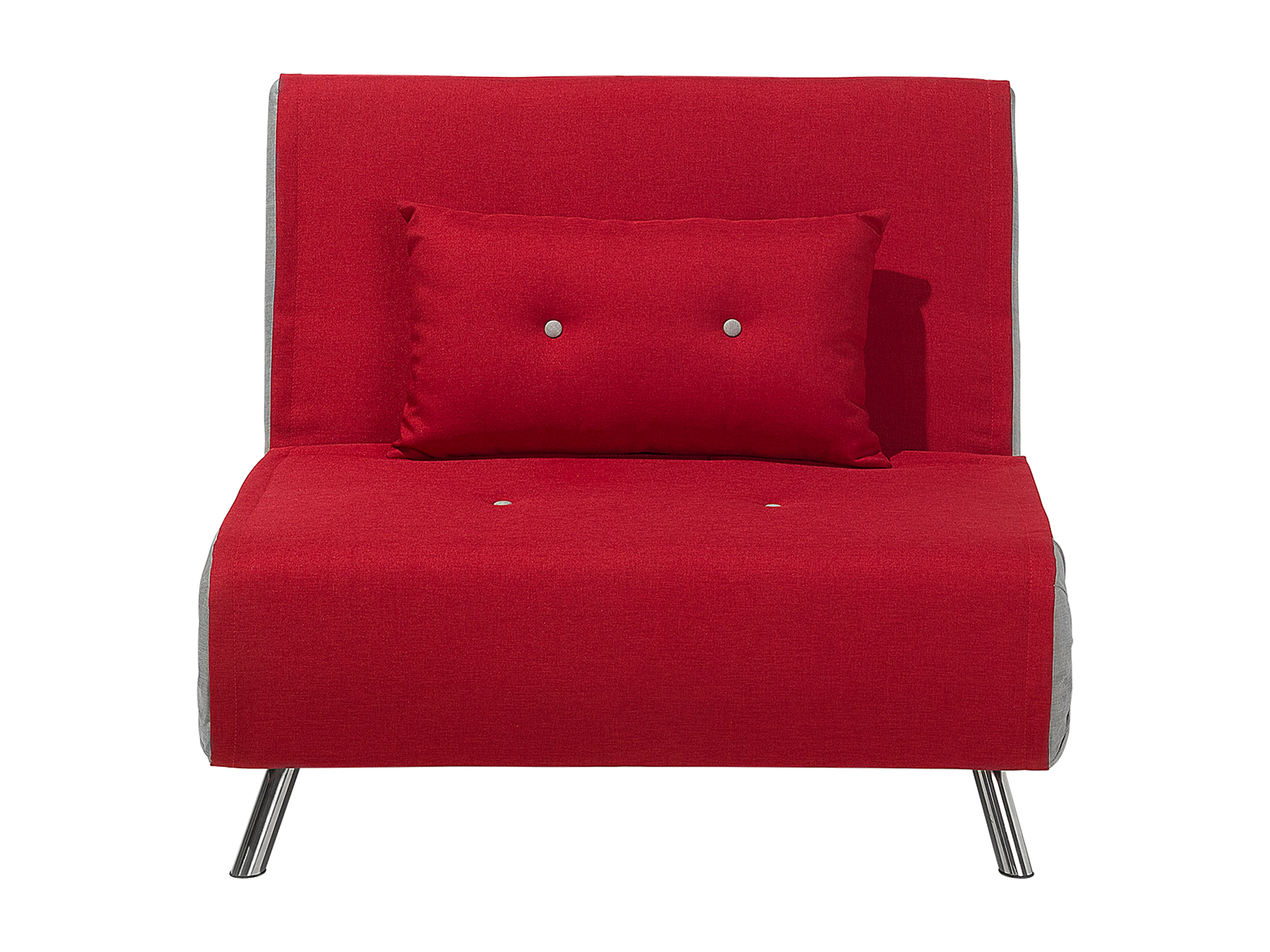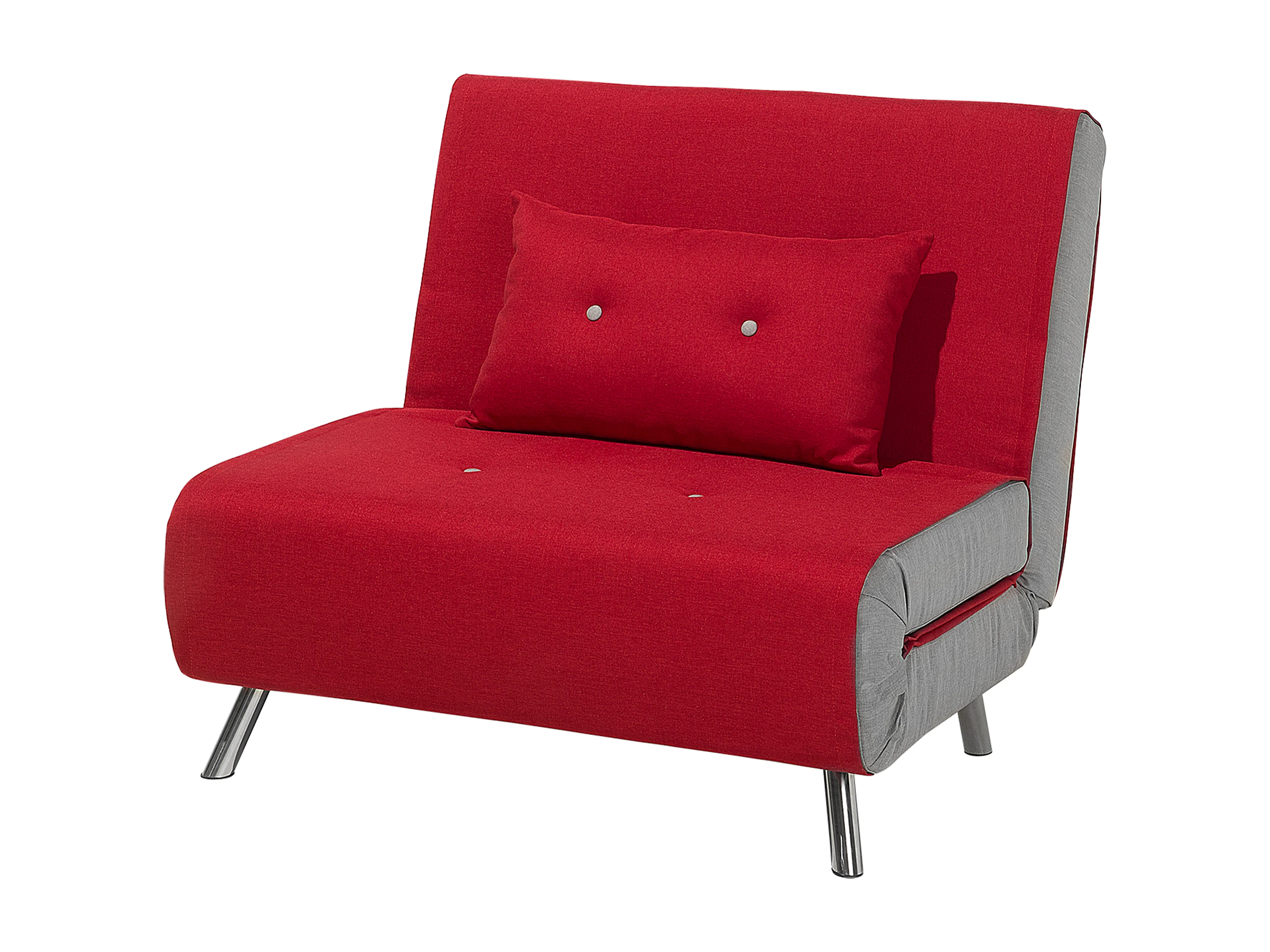 1-Sitzer Schlafsofa Stoff rot mit hohen Edelstahlbeinen Kissen modern Farris