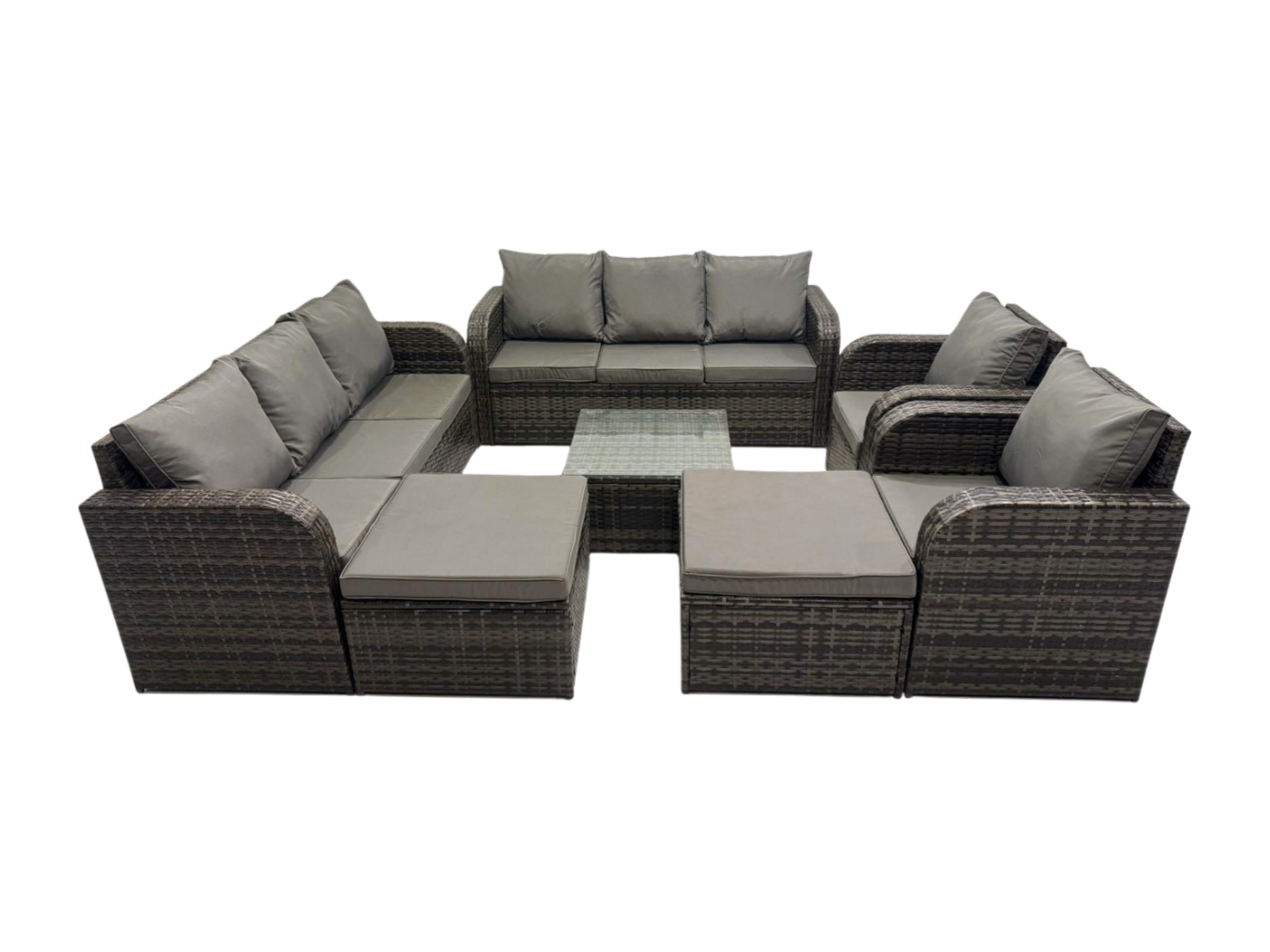 10-Sitzer Polyrattan Gartenmöbelset Garten Sofa Couchtisch Set mit 2 hohen Hockern Dunkelgrau Gemischt