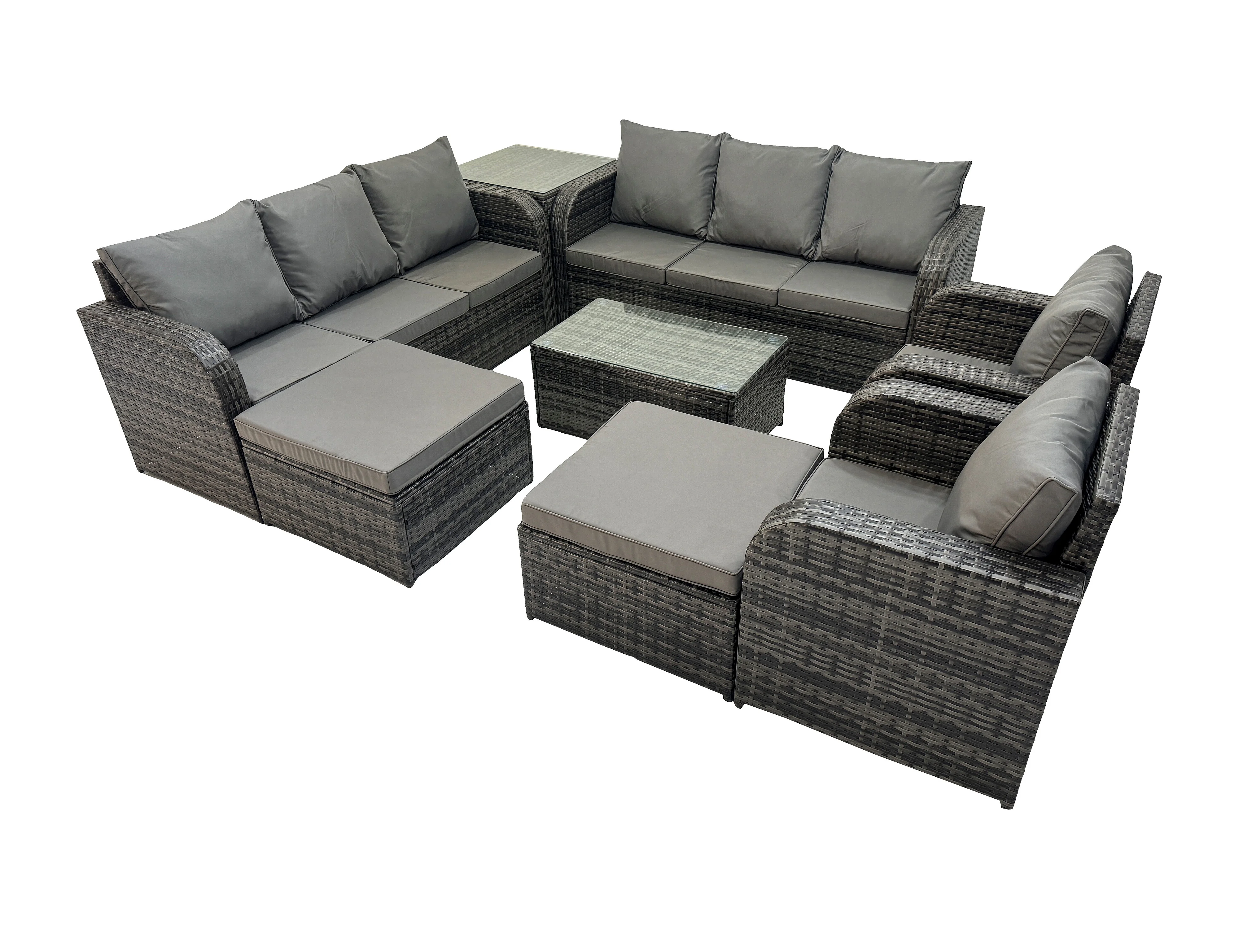 10-Sitzer Rattan Gartenmöbel Sofa Set Tisch & Stühle Set mit 3-Sitzer Sofa Liegestühle 2 hohen Hockern 3-Sitzer Sofa Beistelltisch Dunkelgrau Gemischt