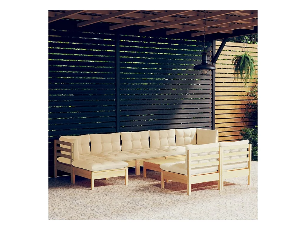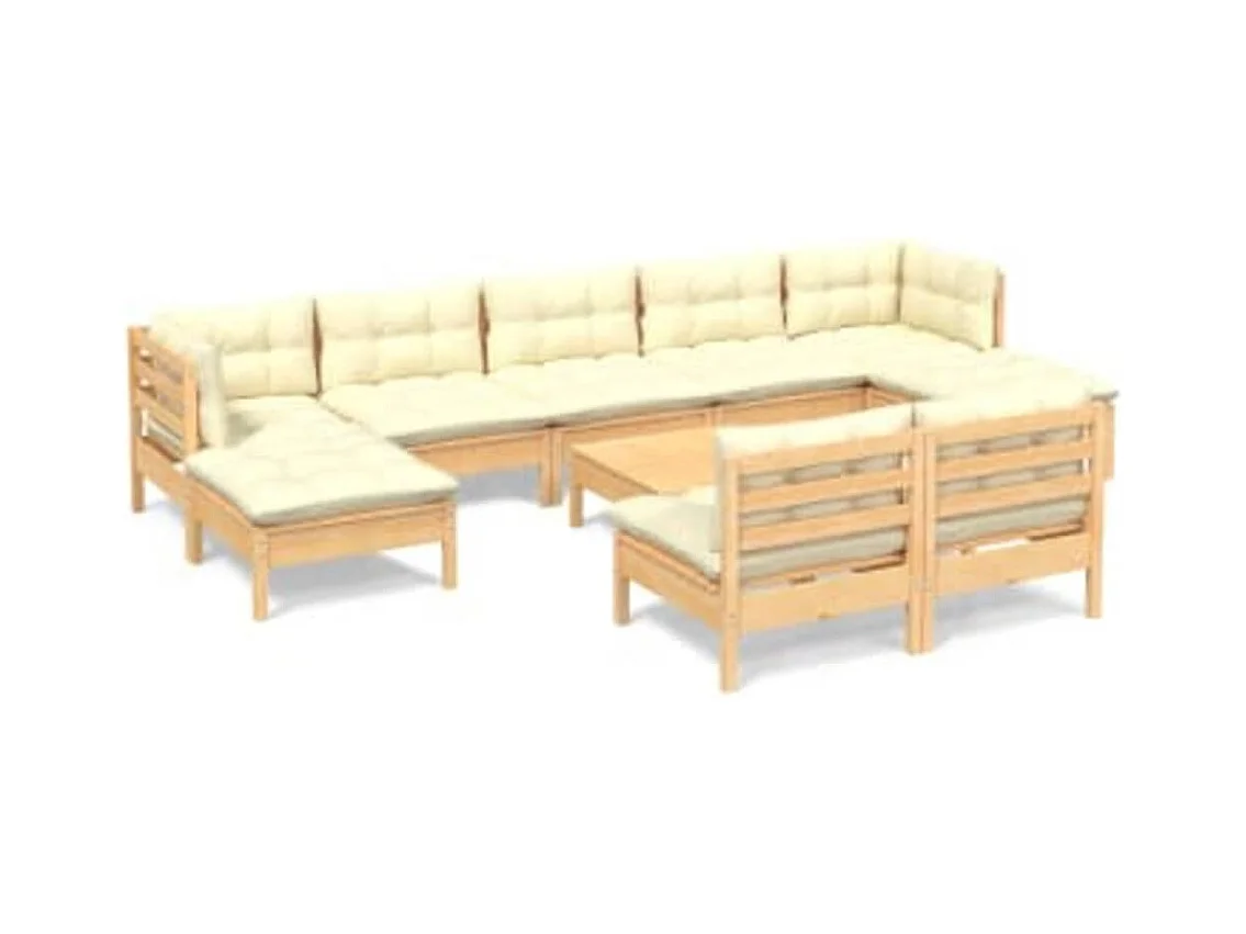 10 Stück Gartenmöbel mit Kissen aus cremefarbenem Kiefernholz
