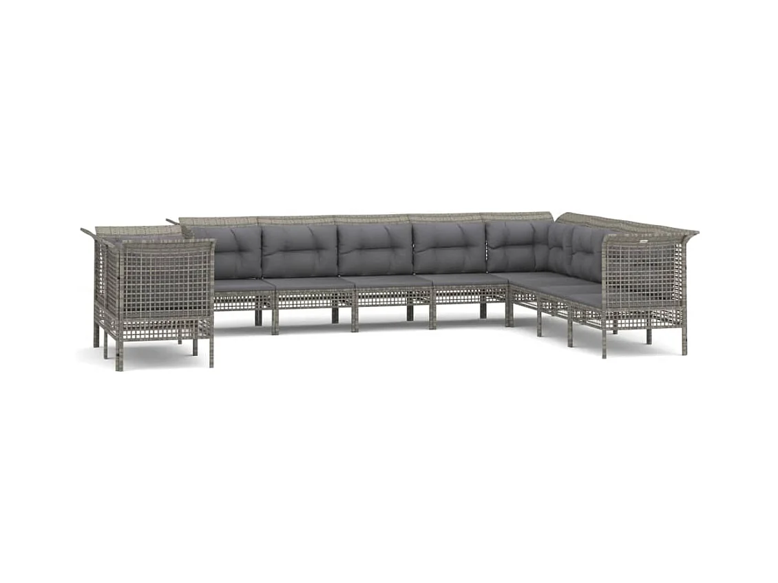 10-tlg. Garten-Lounge-Set mit Kissen Grau Poly Rattan