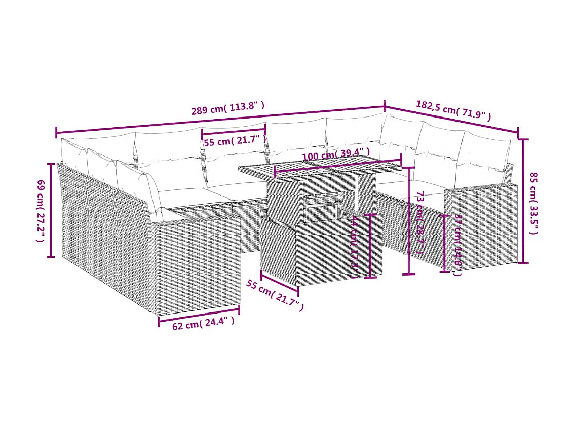 10-tlg. Garten-Sofagarnitur mit Kissen Beige Poly Rattan