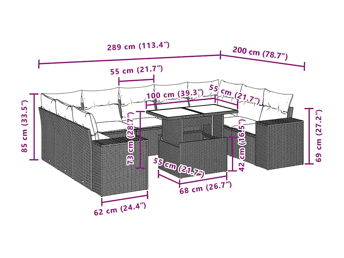 10-tlg. Garten-Sofagarnitur mit Kissen Beige Poly Rattan