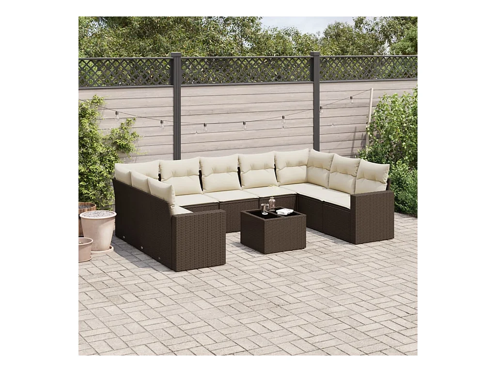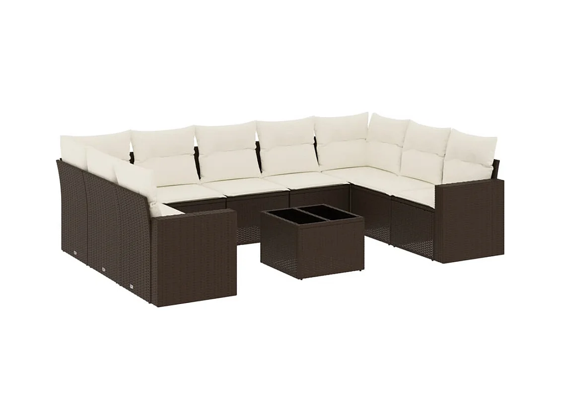 10-tlg. Garten-Sofagarnitur mit Kissen Braun Poly Rattan