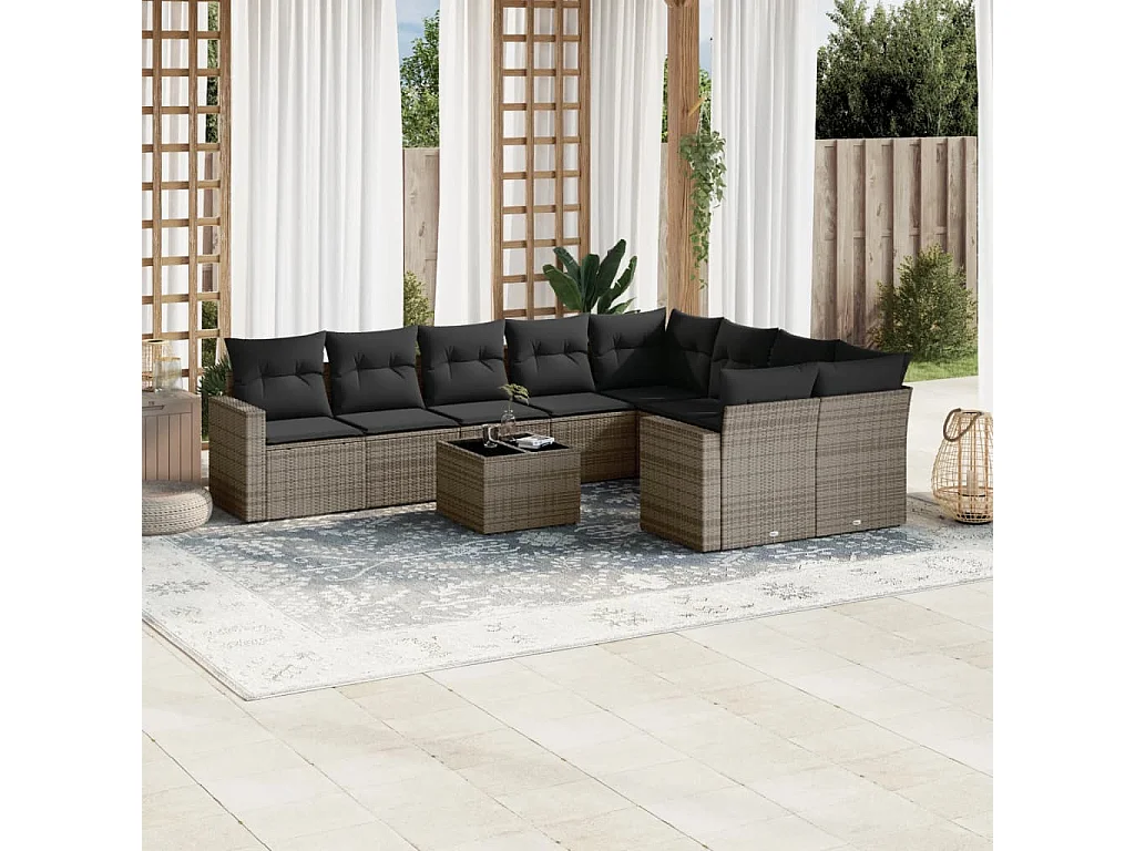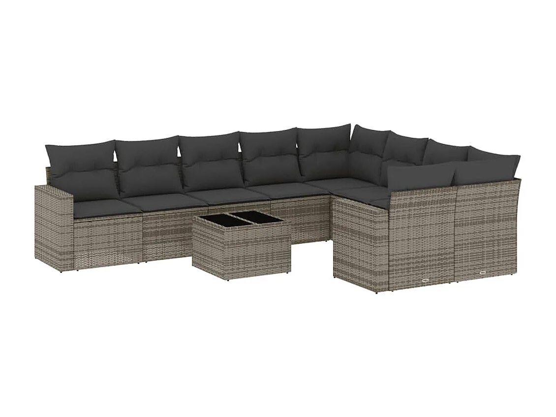 Gartenmöbel mit Kissen, 10 Stück, graues Kunstharzgeflecht