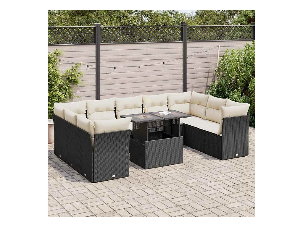 10-tlg. Garten-Sofagarnitur mit Kissen Schwarz Poly Rattan
