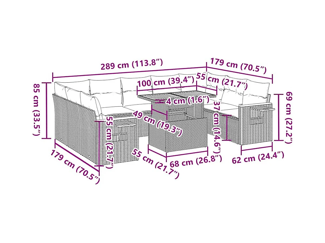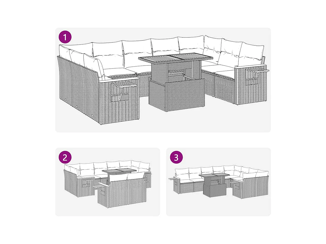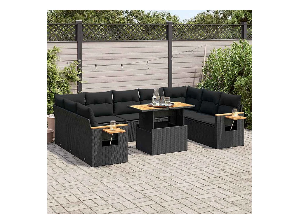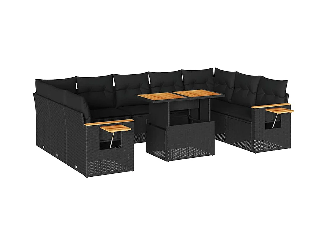 10-tlg. Garten-Sofagarnitur mit Kissen Schwarz Poly Rattan