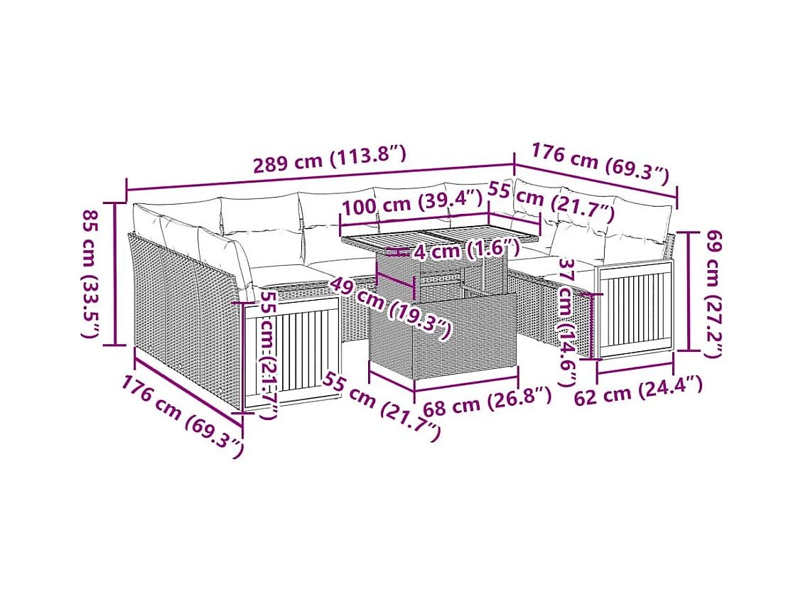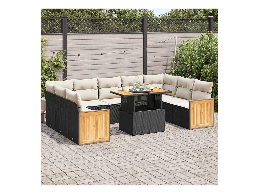 10-tlg. Garten-Sofagarnitur mit Kissen Schwarz Poly Rattan