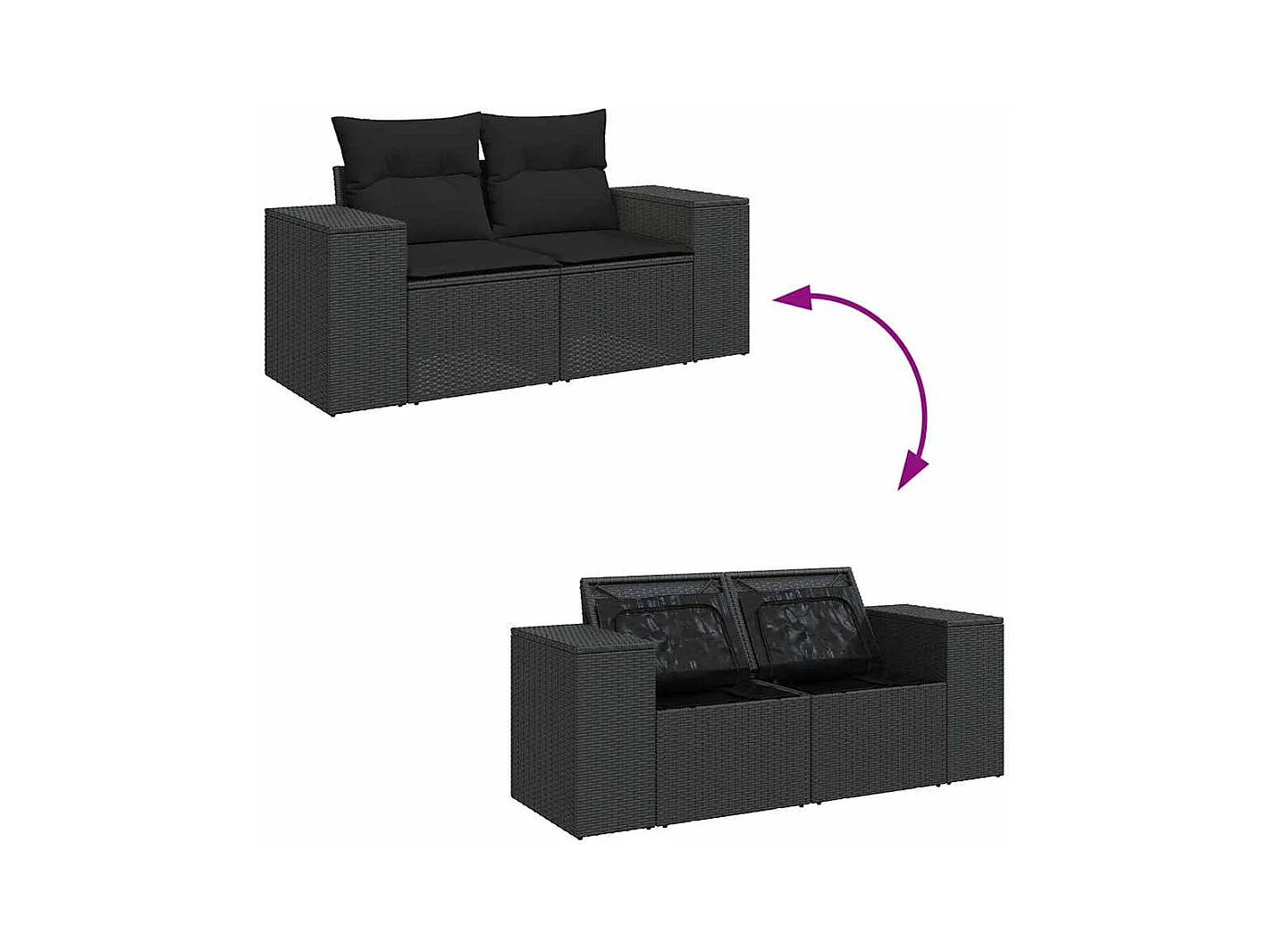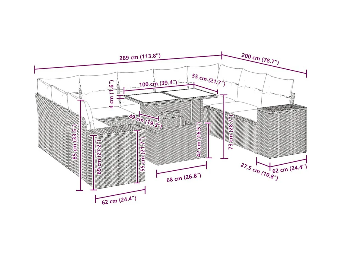 10-tlg. Garten-Sofagarnitur mit Kissen Schwarz Poly Rattan