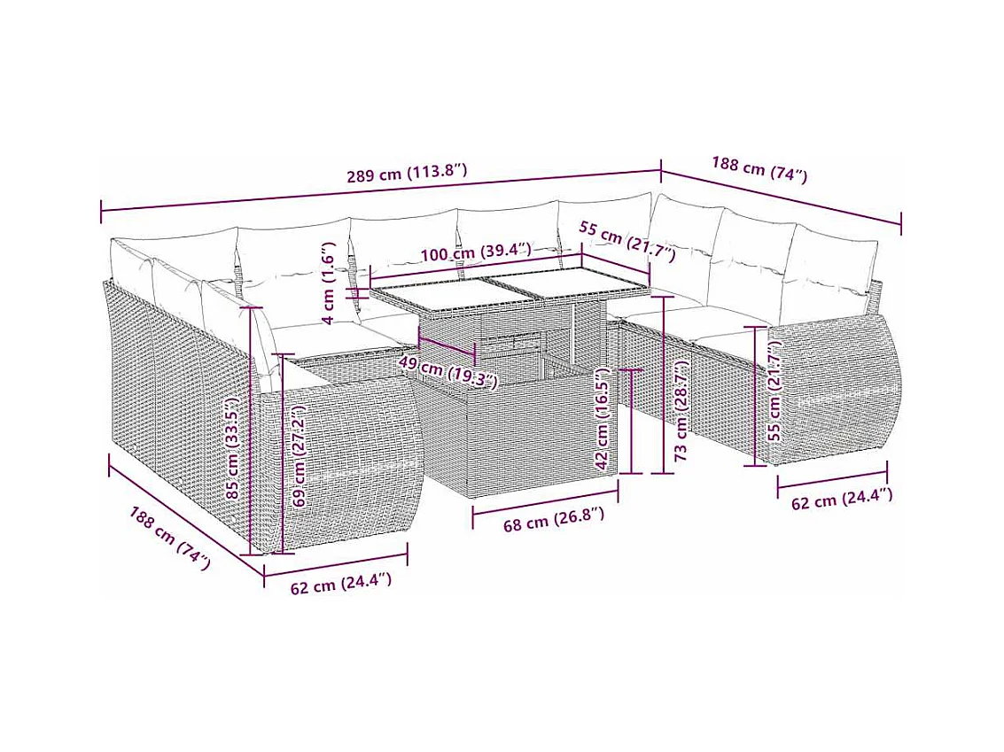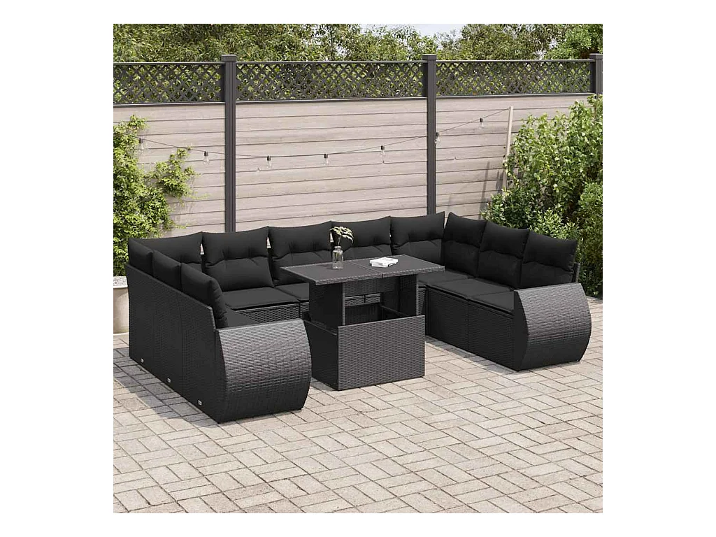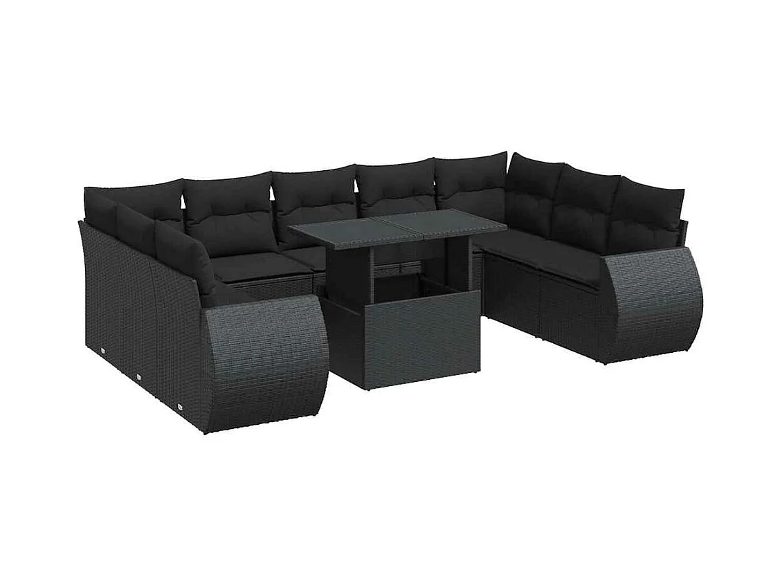 10-tlg. Garten-Sofagarnitur mit Kissen Schwarz Poly Rattan