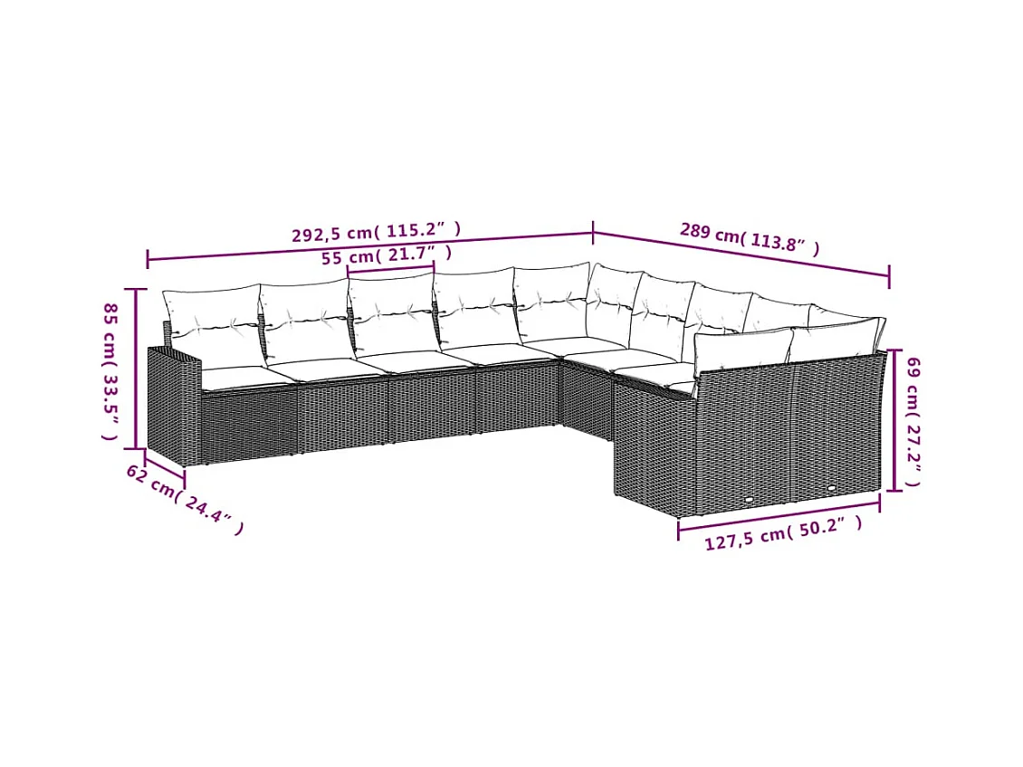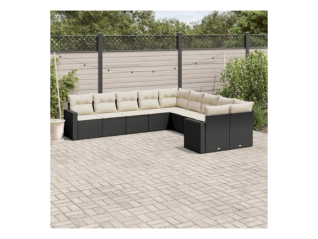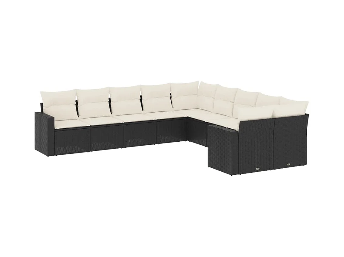 10-tlg. Garten-Sofagarnitur mit Kissen Schwarz Poly Rattan