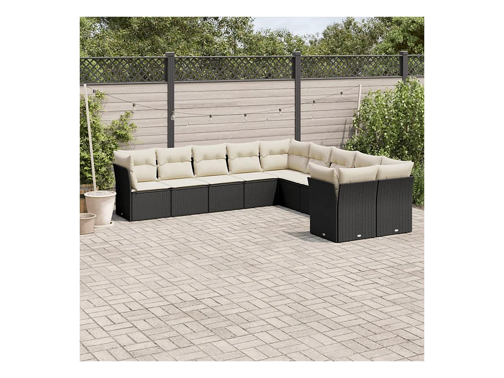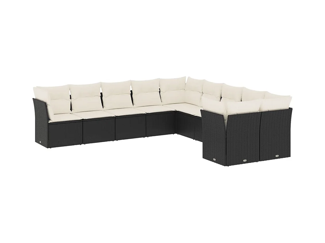 10-tlg. Garten-Sofagarnitur mit Kissen Schwarz Poly Rattan