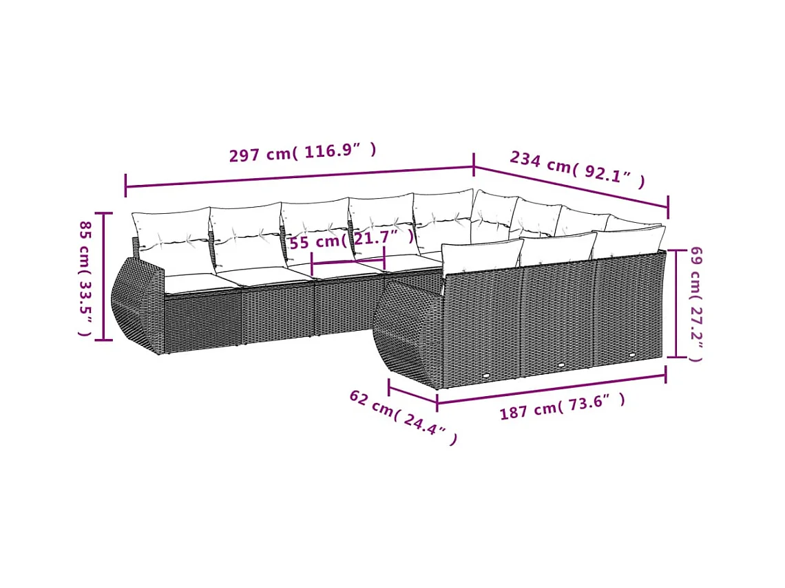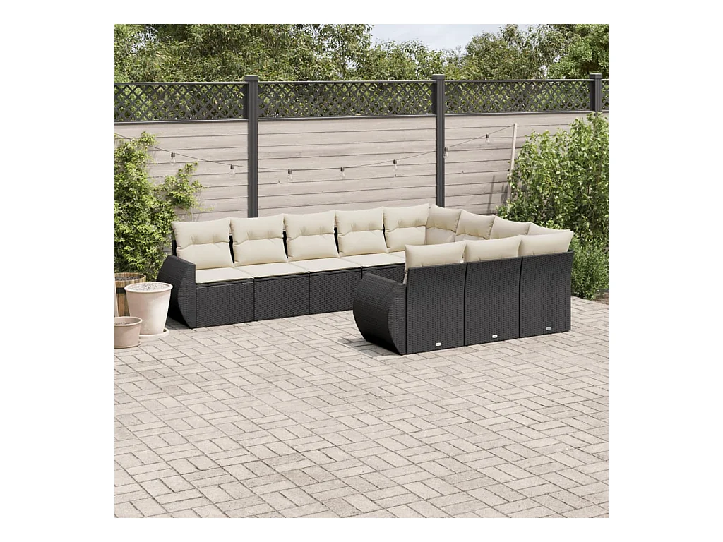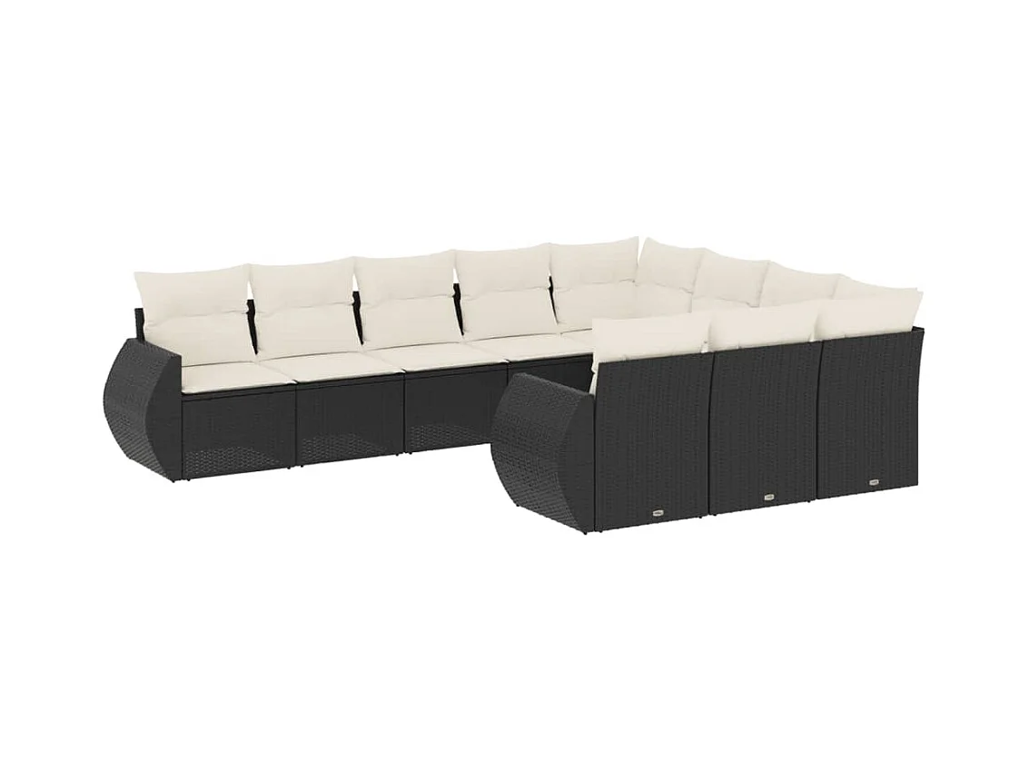 10-tlg. Garten-Sofagarnitur mit Kissen Schwarz Poly Rattan
