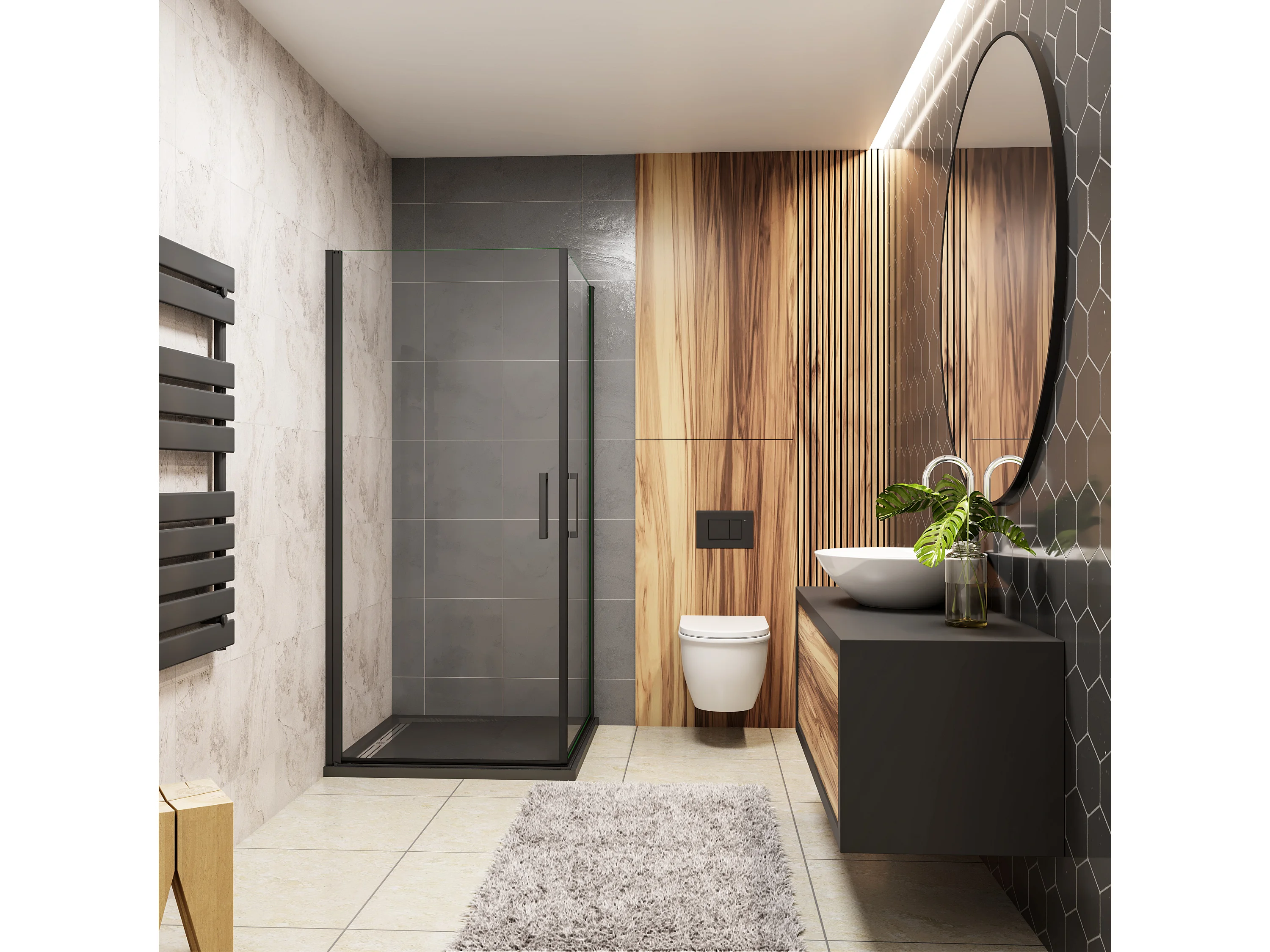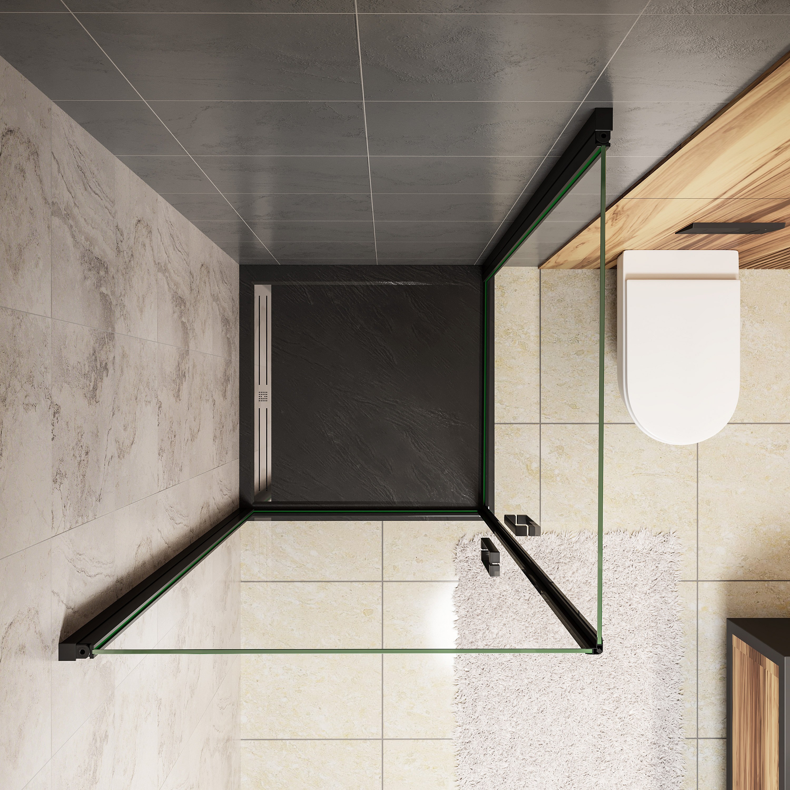 100x100x200cm 8mm Duschtrennwand Drehtür Glastür Duschtür Duschkabine schwarz