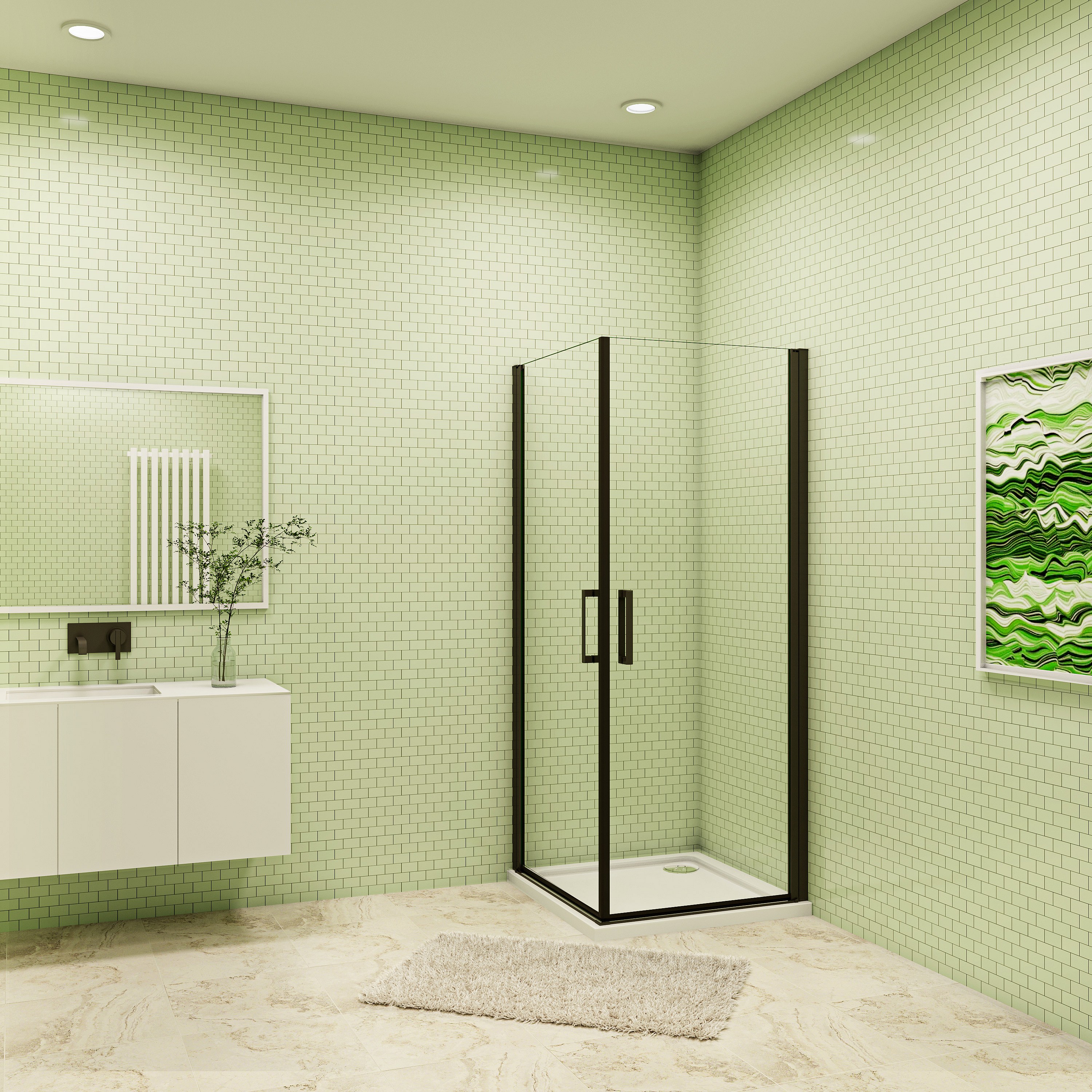 100x100x200cm 8mm Duschtrennwand Drehtür Glastür Duschtür Duschkabine schwarz mit Duschwand