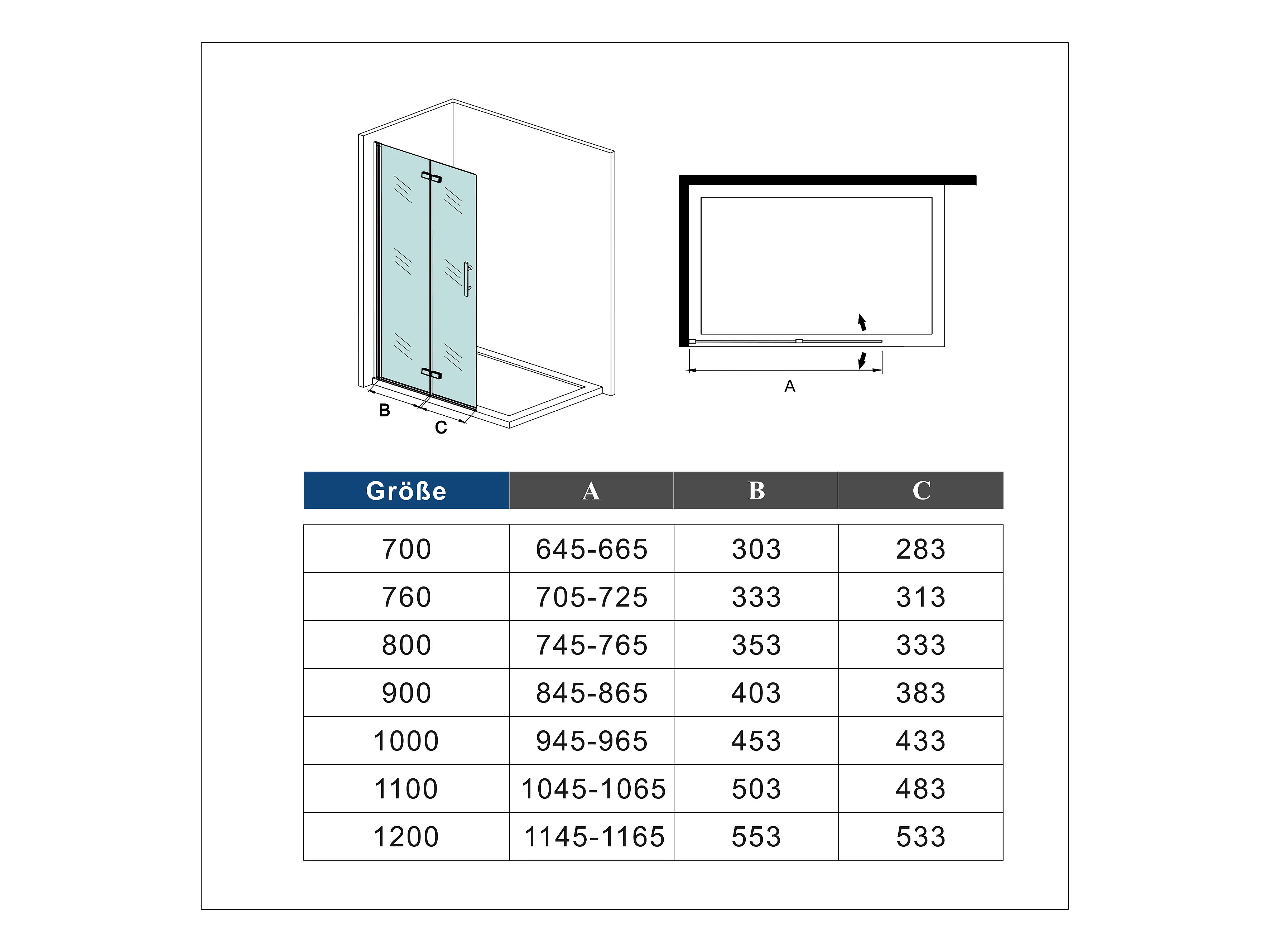 100x185cm Walk in Faltbar+drehbar Nano ESG Glas Duschwand Duschtür Duschabtrennung Dusche