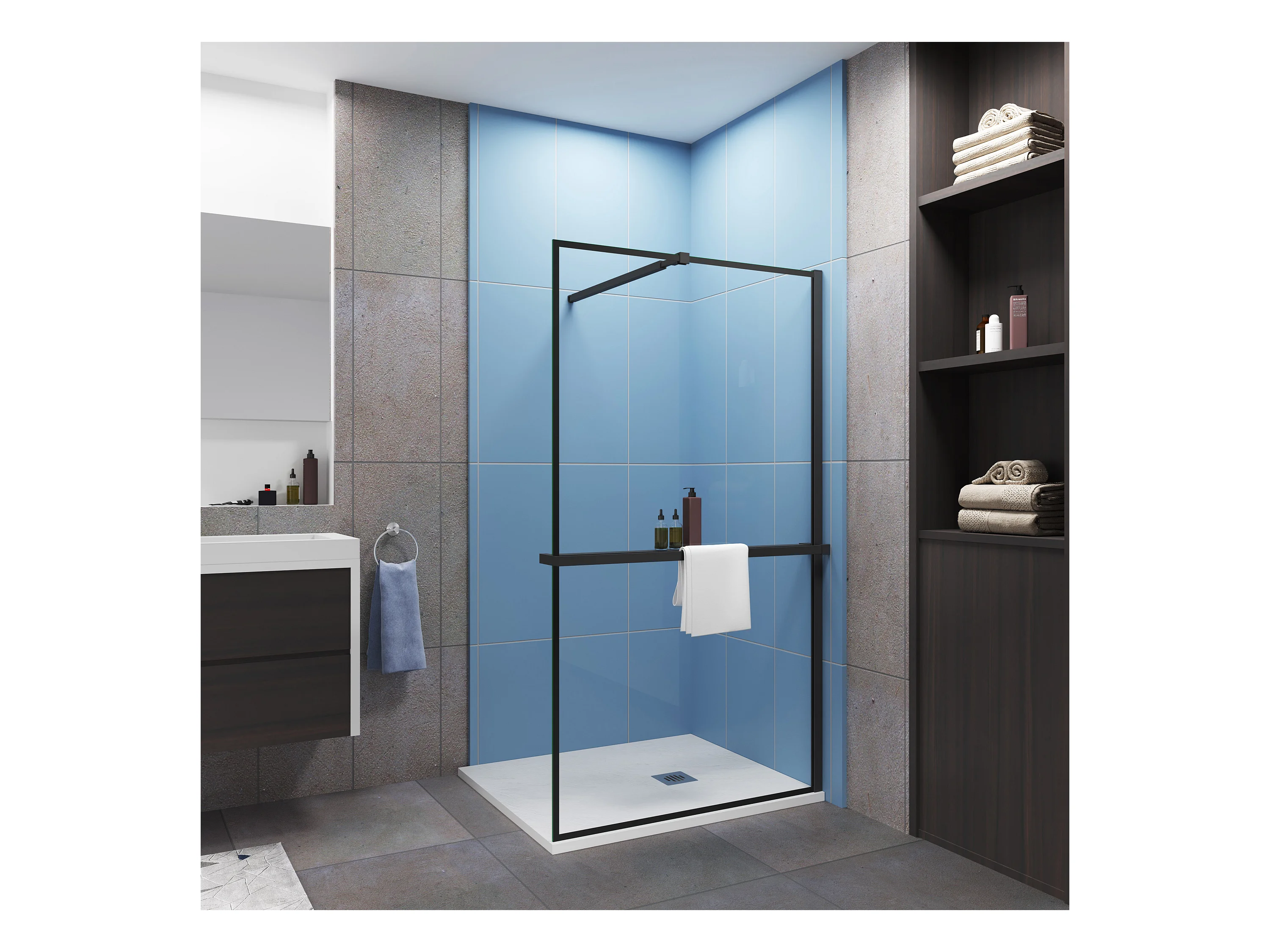 100x200cm 8mm ESG Handtuchhalter schwarz Duschwand Duschabtrennung