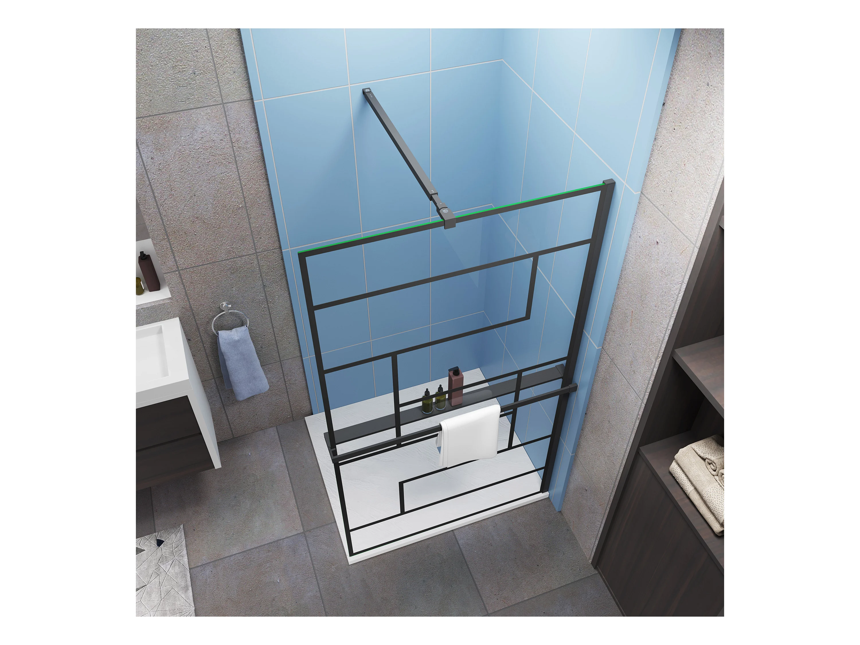 100x200cm 8mm ESG Schwarz mit Handtuchhalter Walk-in Duschabtrennung
