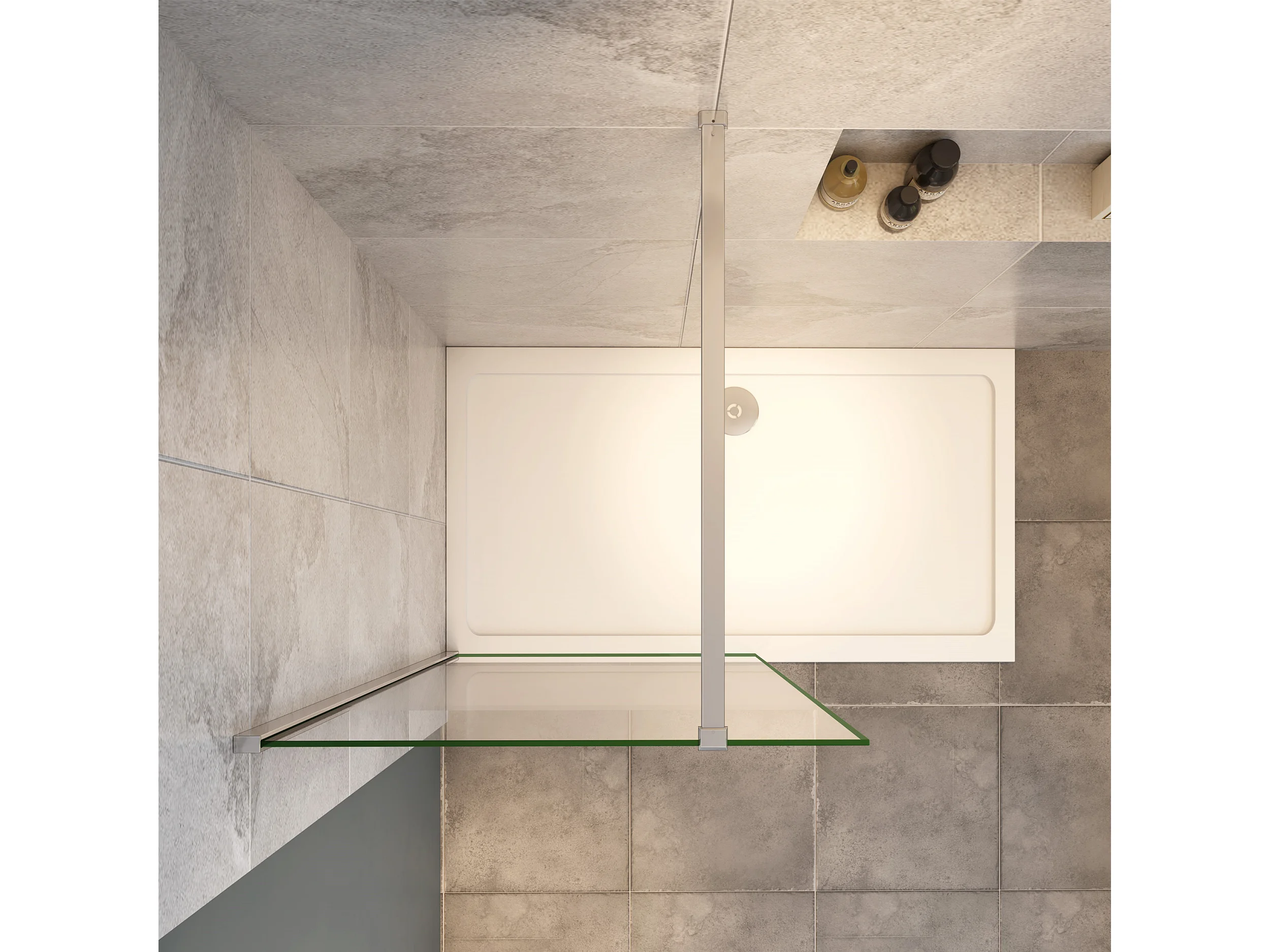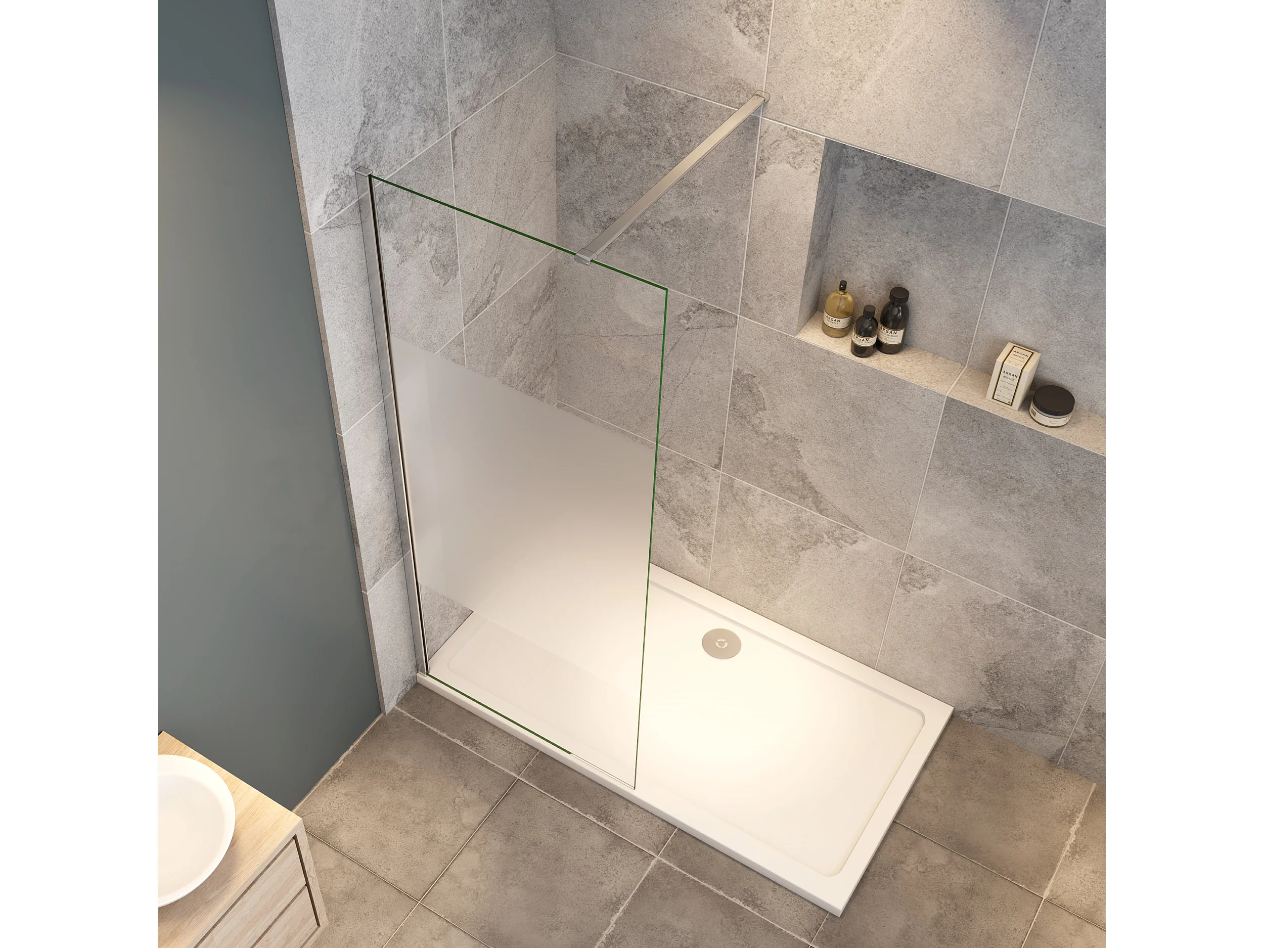 100x200cm Duschabtrennung Walk In 8mm Nano ESG Milchglasstreifen Duschabtrennung + N Form:140cm Stabilisator Höhe 200cm