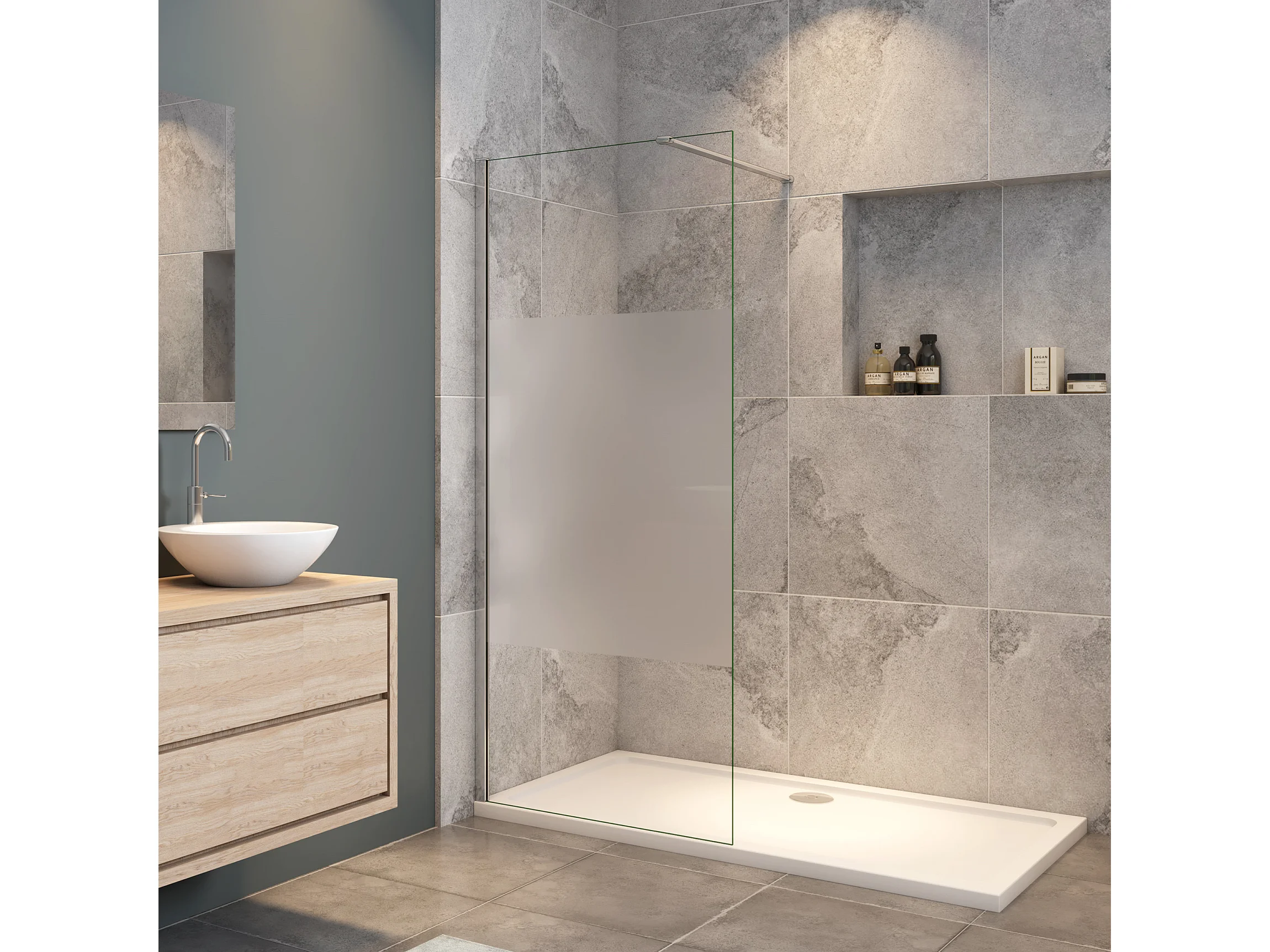100x200cm Duschabtrennung Walk In 8mm Nano ESG Milchglasstreifen Duschabtrennung + N Form:90cm Stabilisator Höhe 200cm