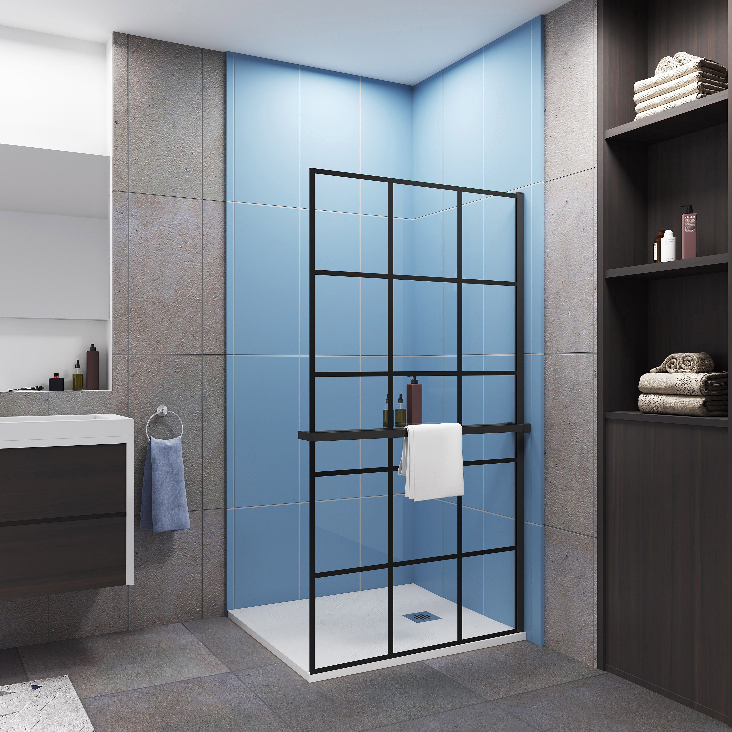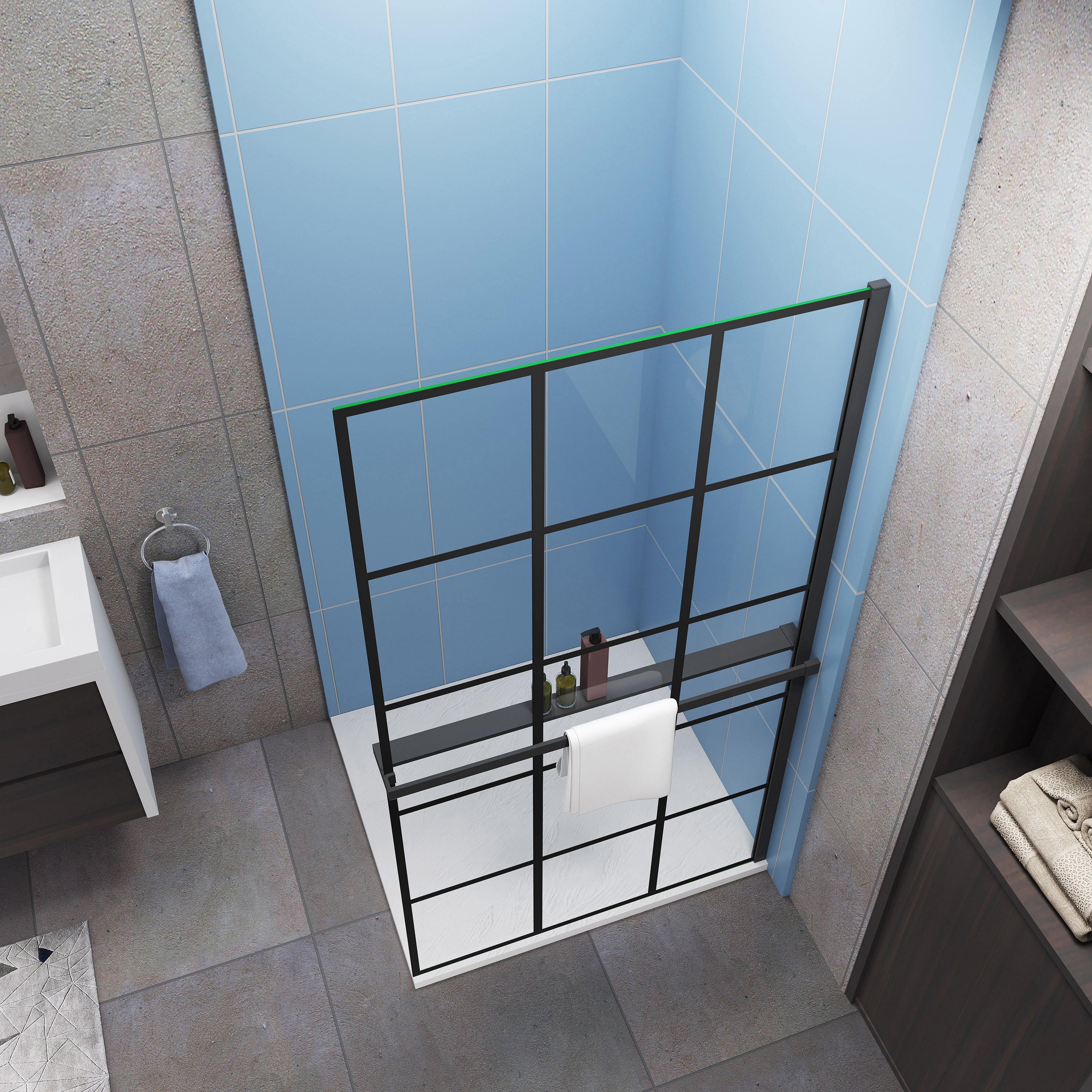 100x200cm schwarz Handtuchhalter Stützstange 8mm ESG Walk in Dusche