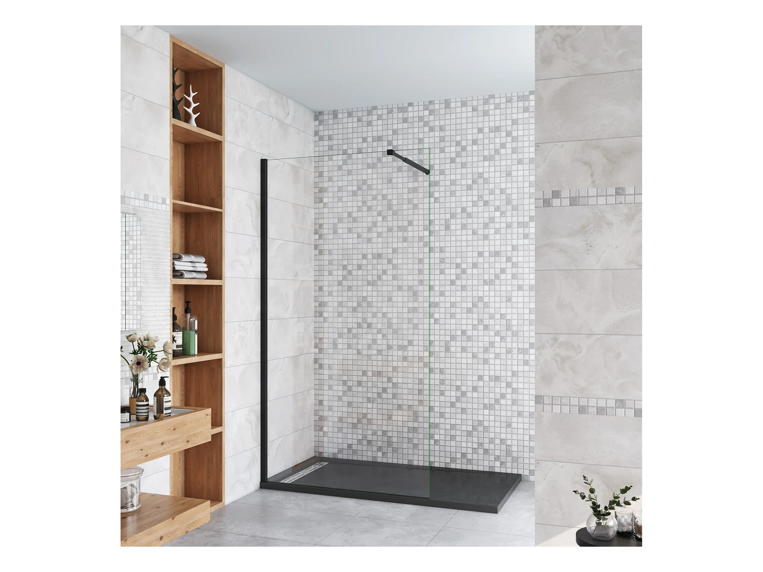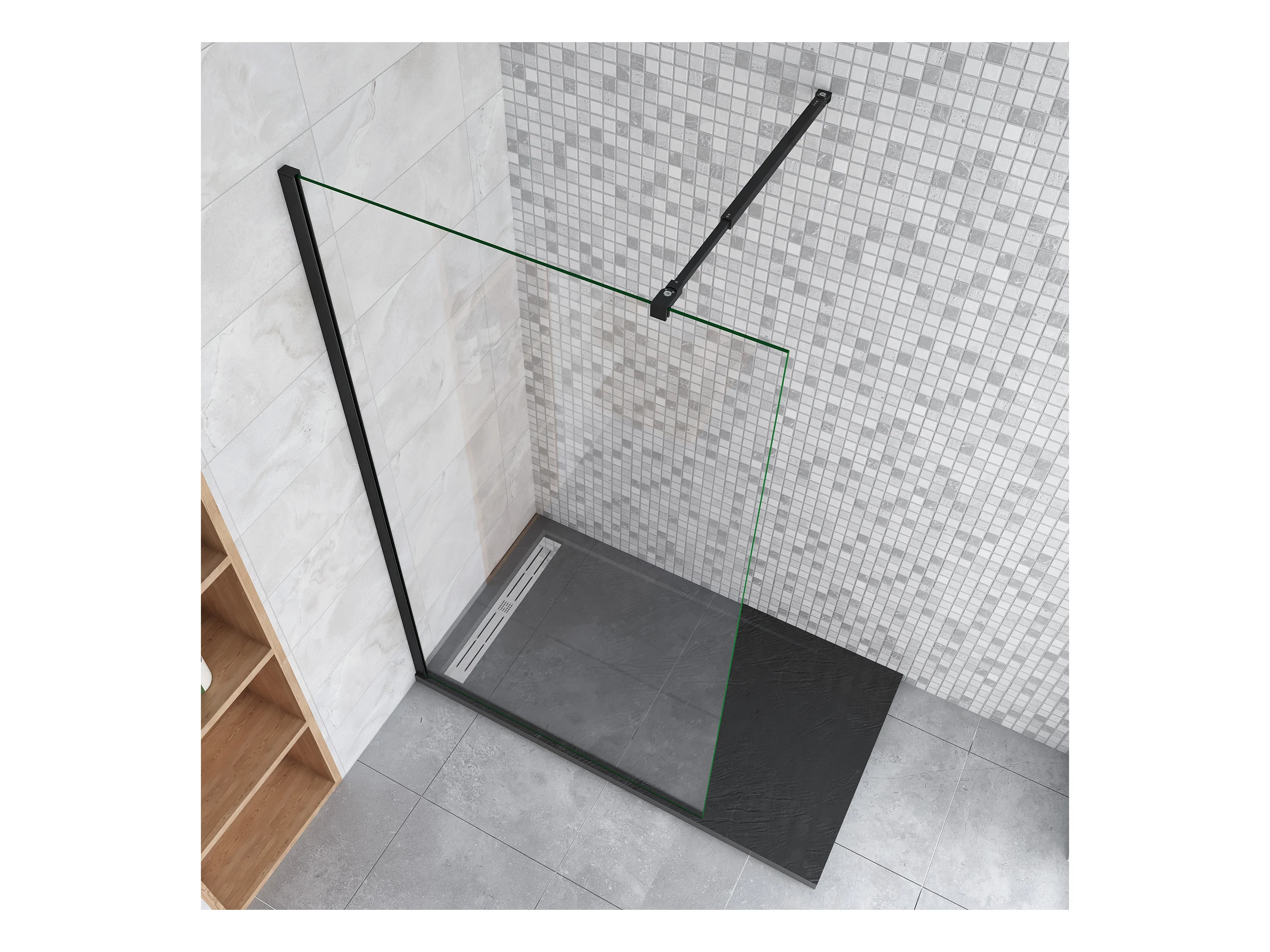 100x200cm Schwarzrahmen Walk in Duschkabine Duschwand +73-120cm Stabilisator 8mm NANO ESG-Glas Duschabtrennung Duschtrennwand