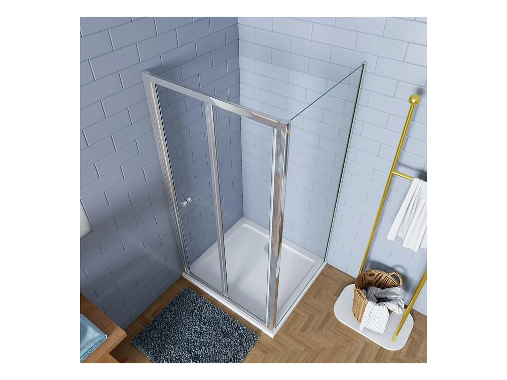 100x80x185cm 5mm ESG mit Seitenwand Pendeltür Falttür Duschkabine