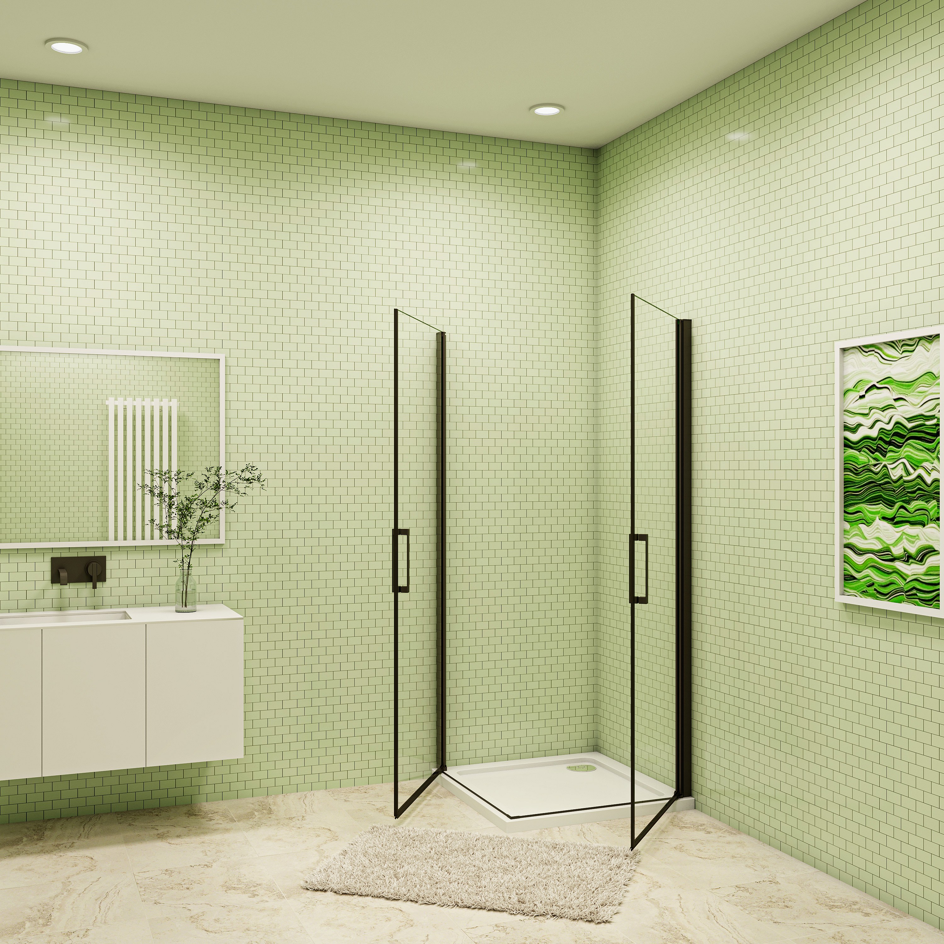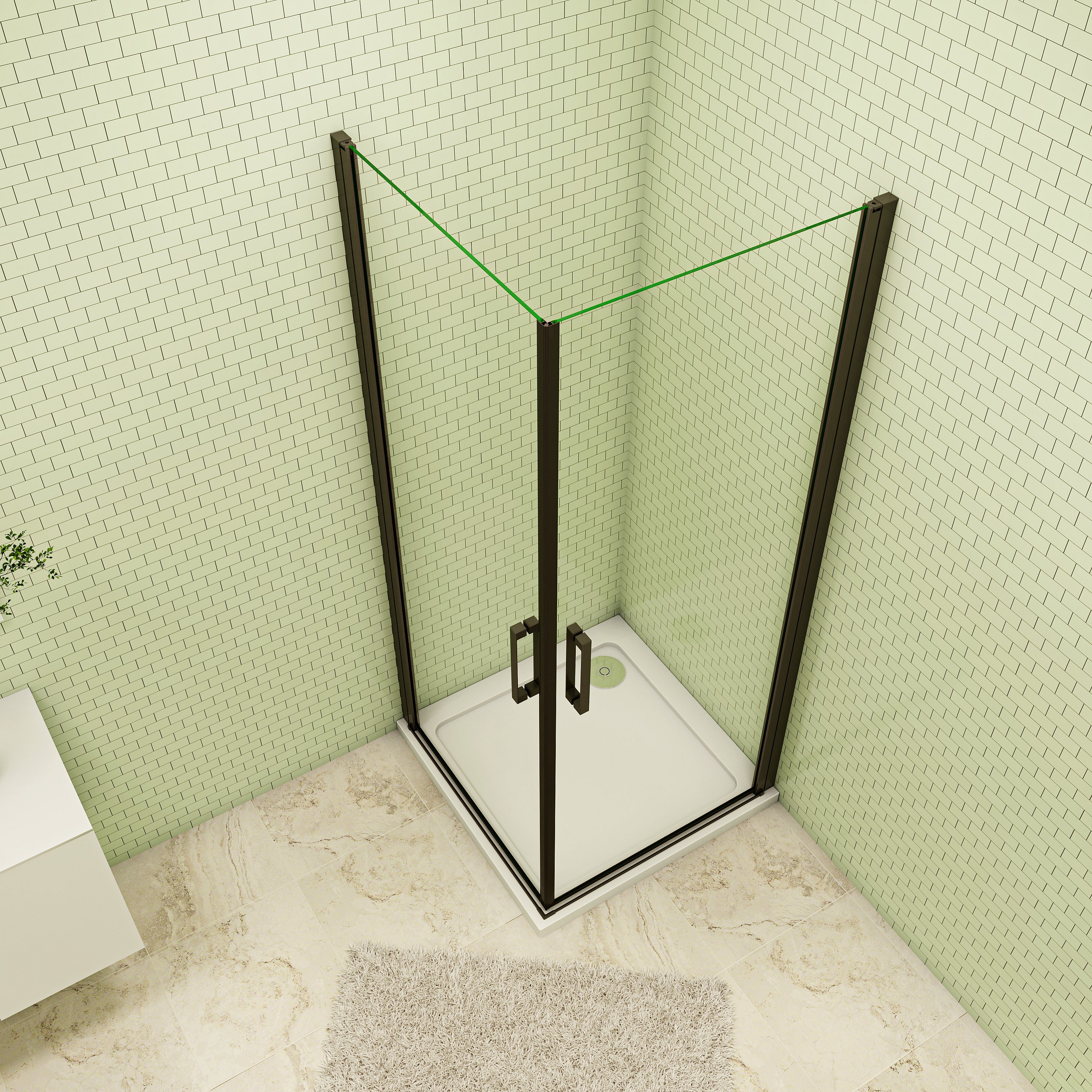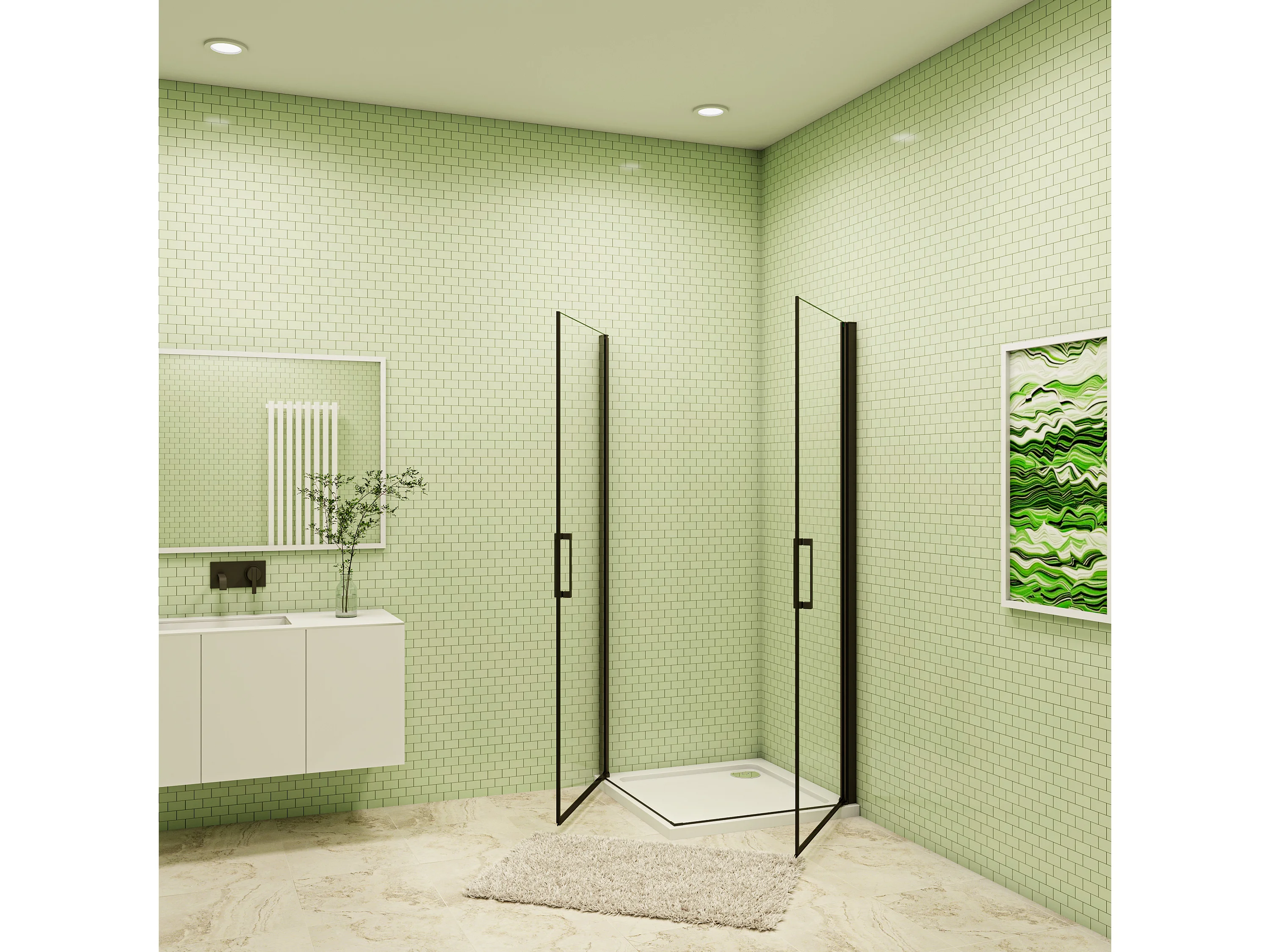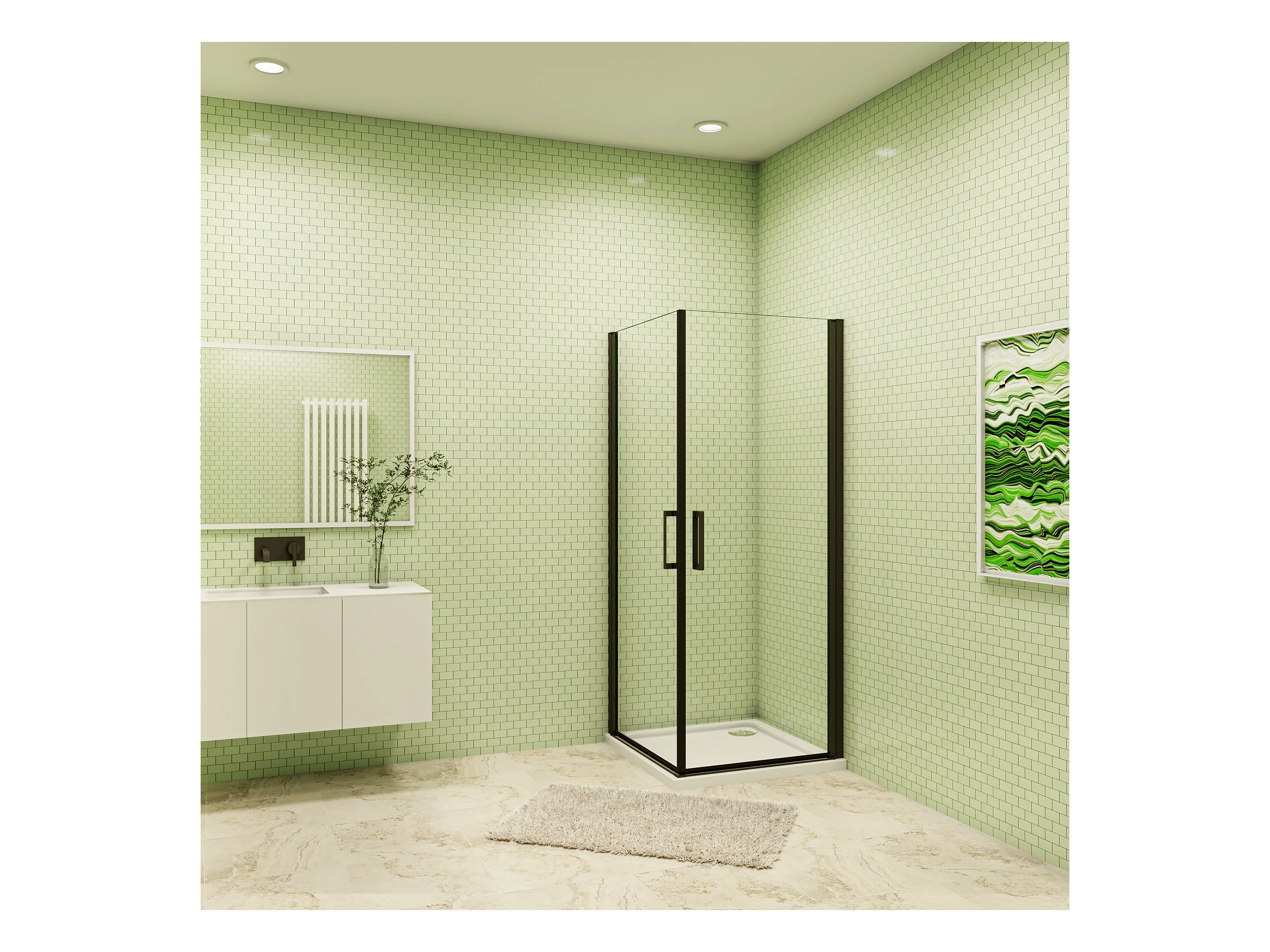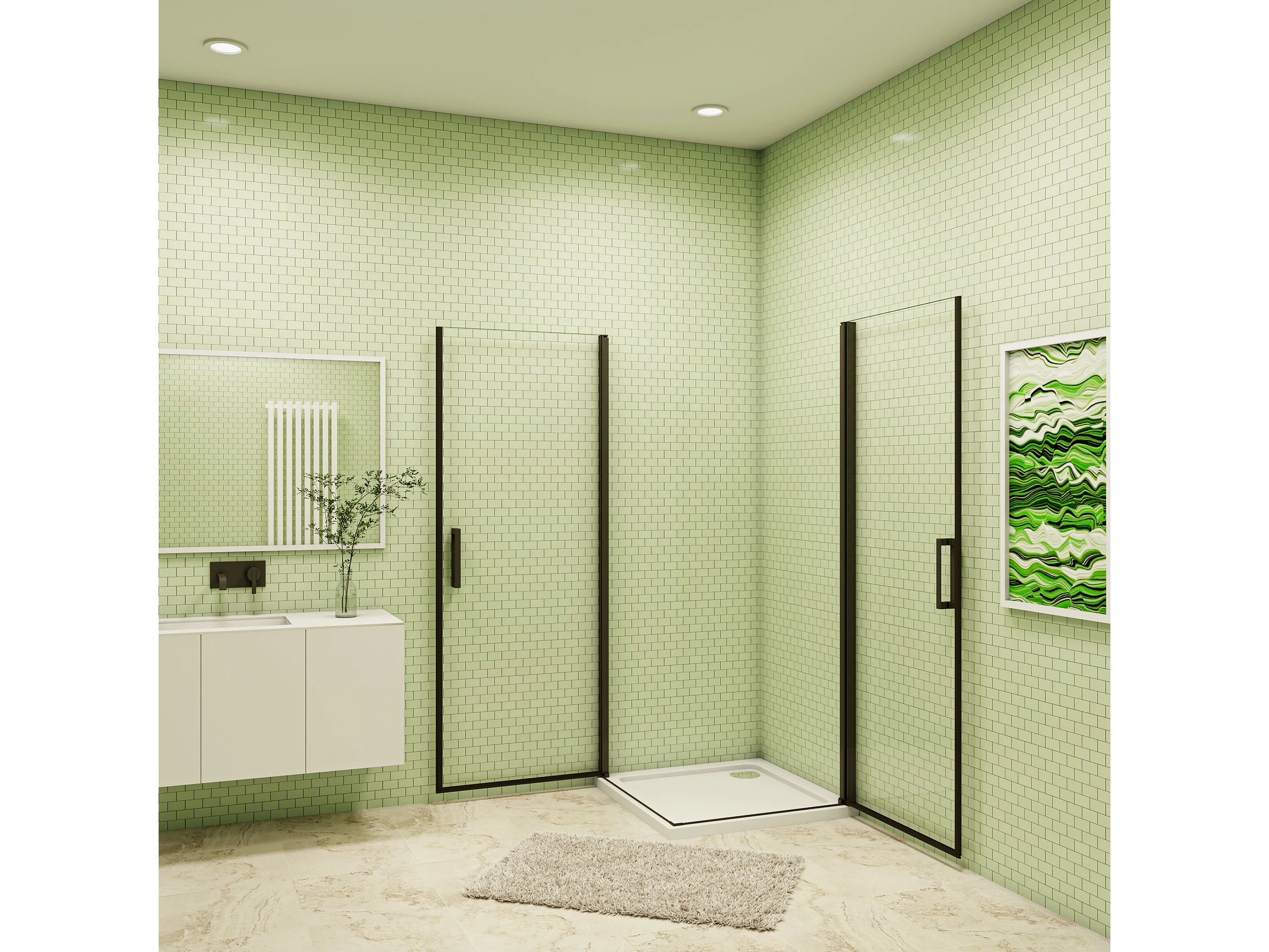 100x90x200cm 8mm Duschtrennwand Drehtür Glastür Duschtür Duschkabine schwarz mit Duschwand
