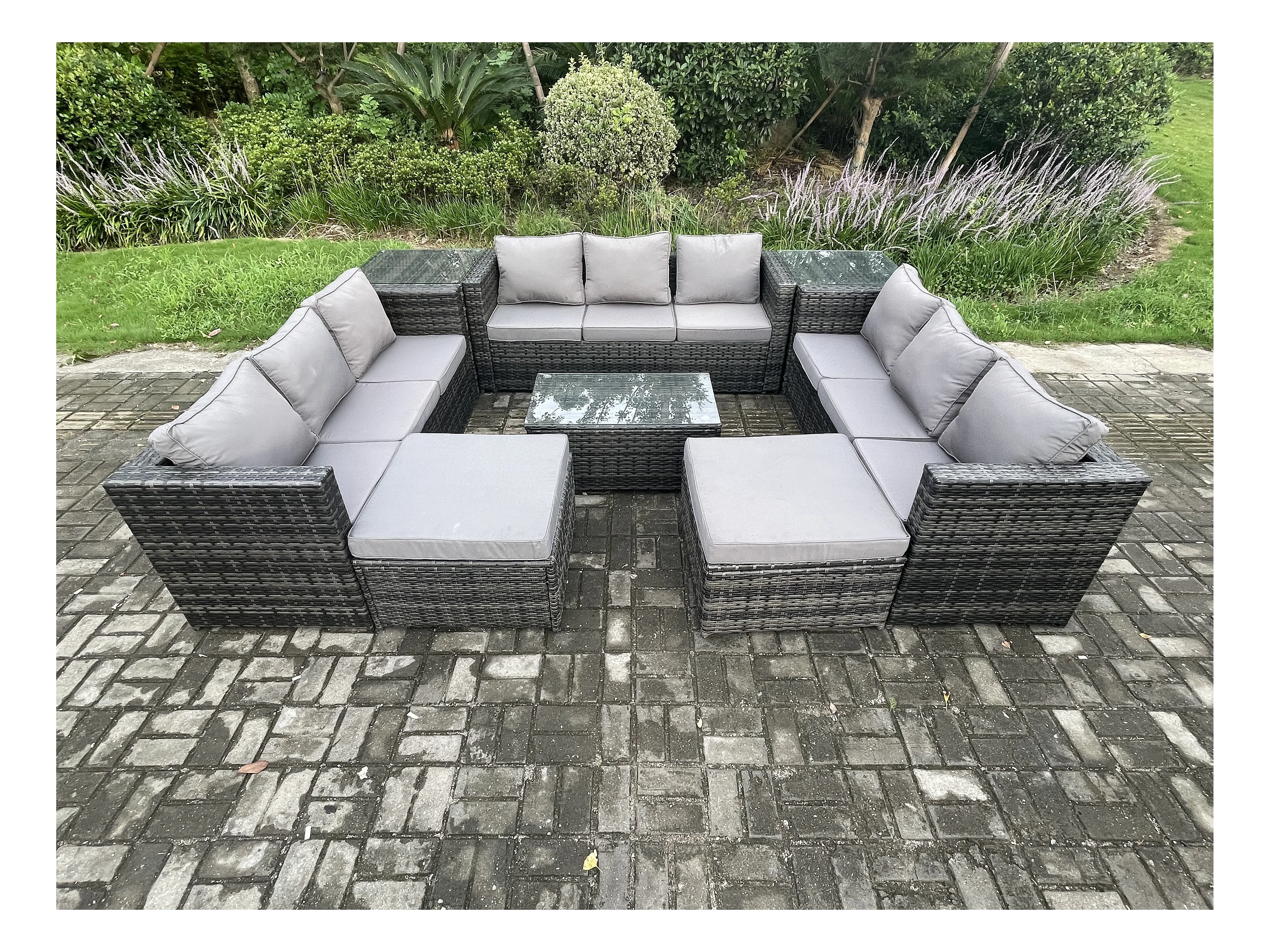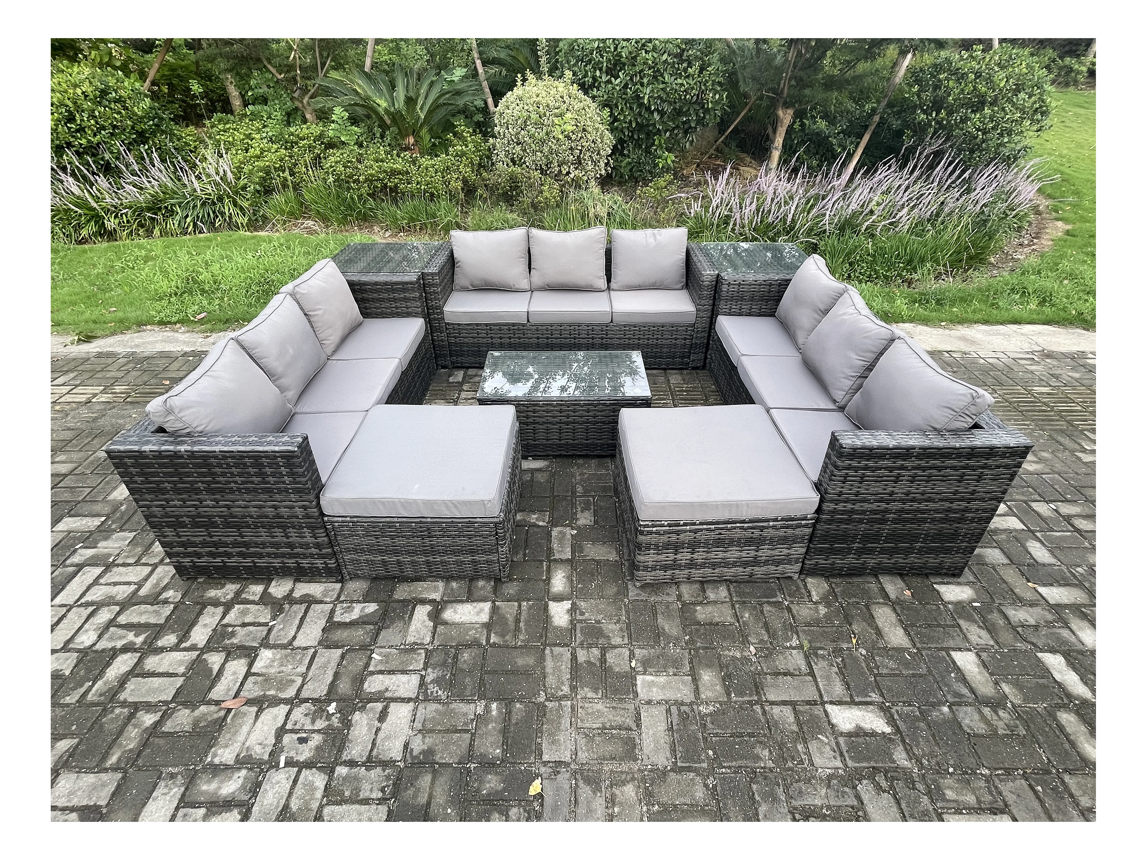11-Sitzer Gartenset im Freien mit Couchtisch Polyrattan Dunkelgrau