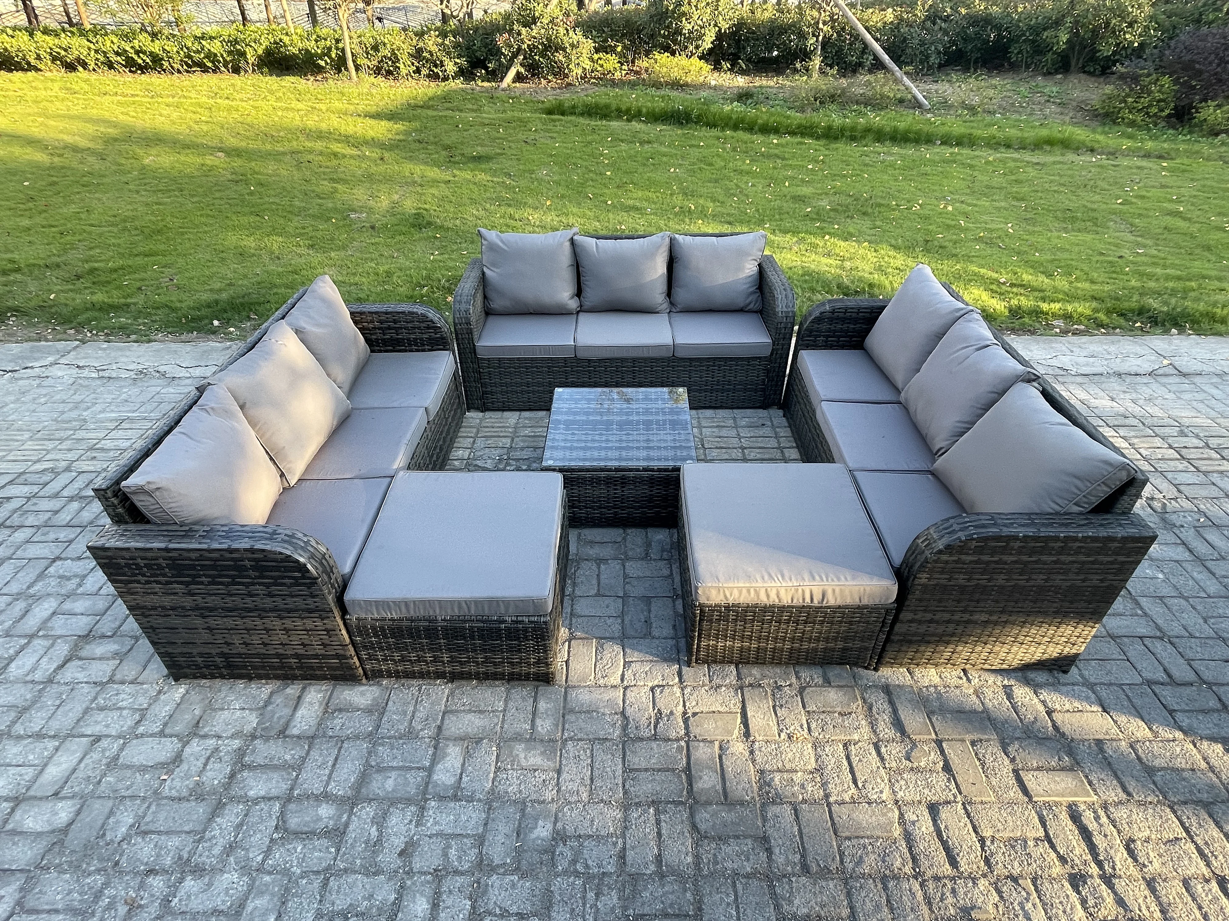 11-Sitzer Polyrattan Gartenmöbelset Garten Sofa Couchtisch Set mit 2 hohen Hockern Dunkelgrau Gemischt