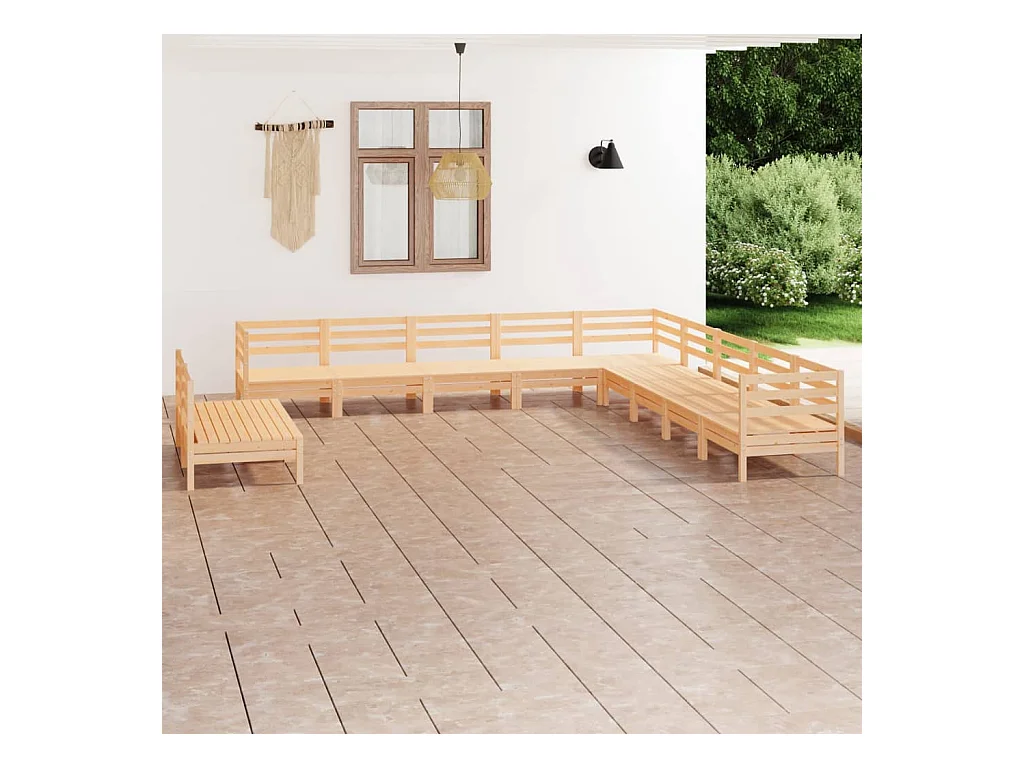 11-tlg. Garten-Lounge-Set Massivholz Kiefer