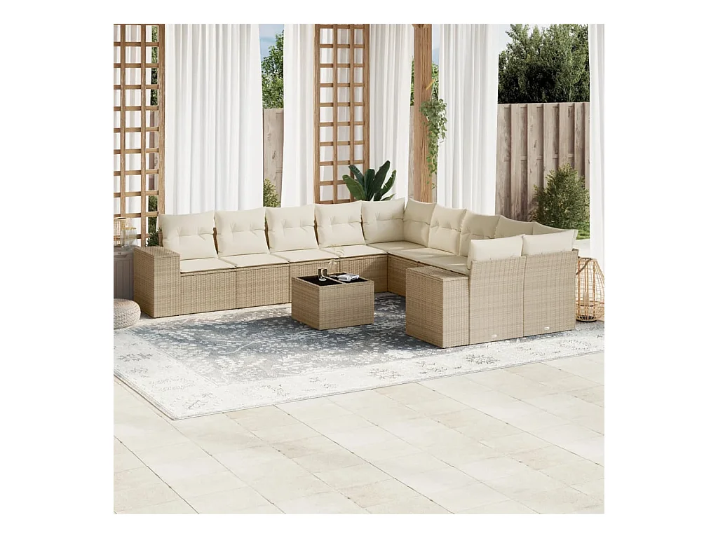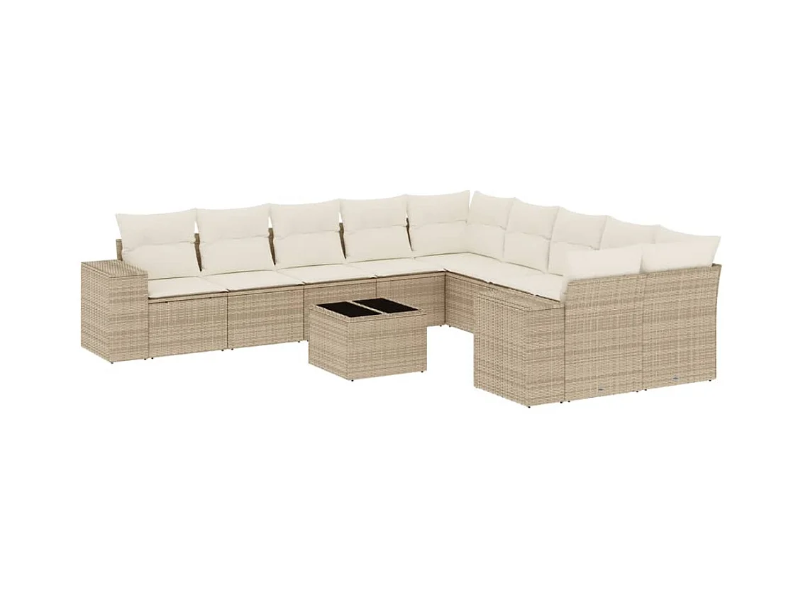11-tlg. Garten-Sofagarnitur mit Kissen Beige Poly Rattan