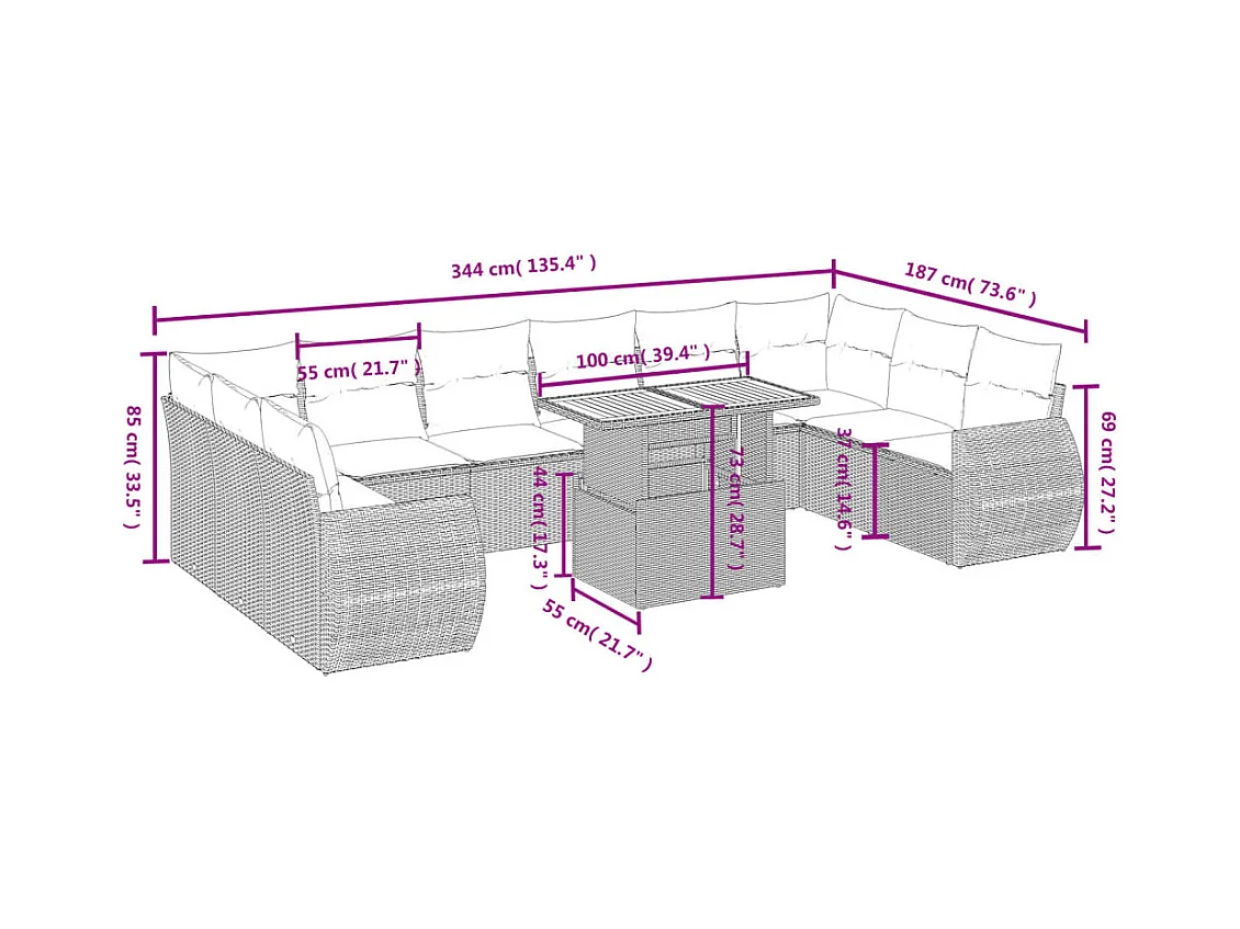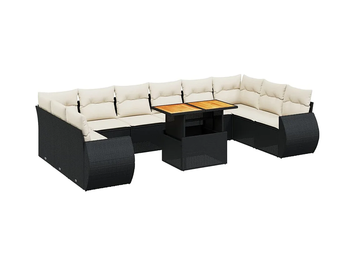 11-tlg. Garten-Sofagarnitur mit Kissen Schwarz Poly Rattan