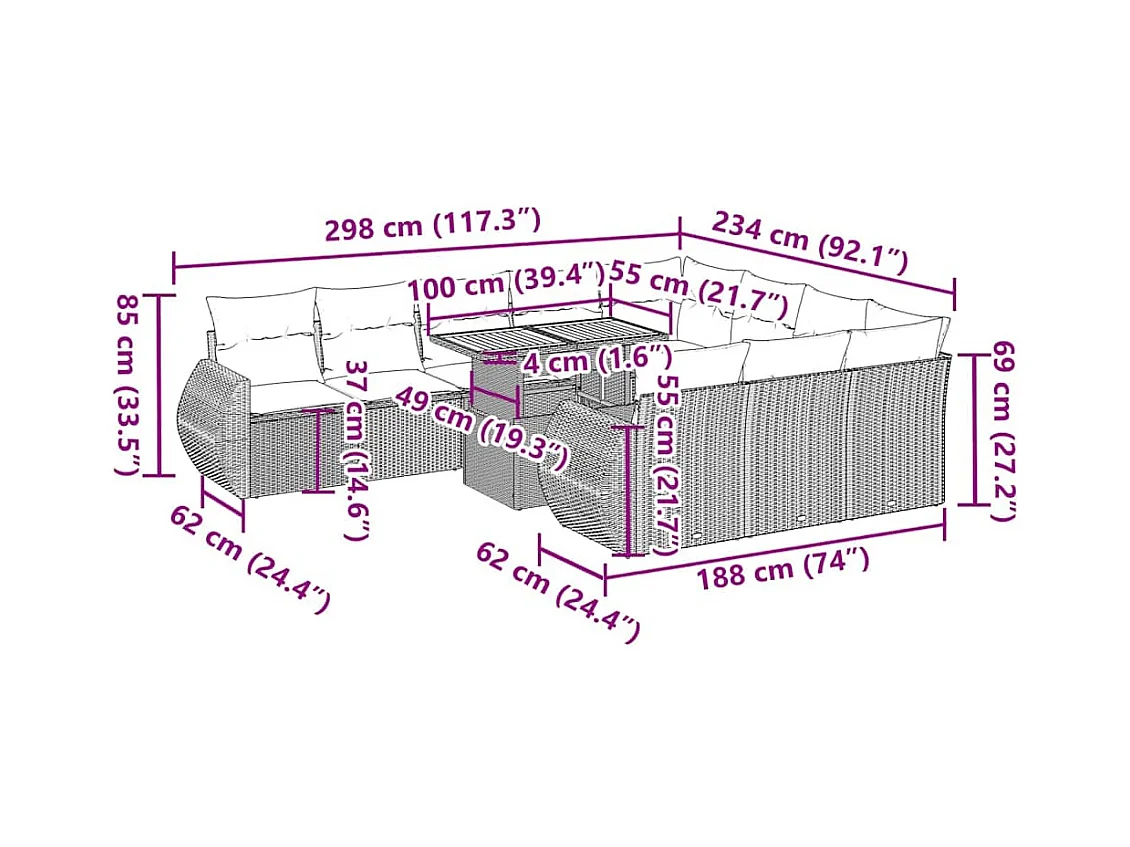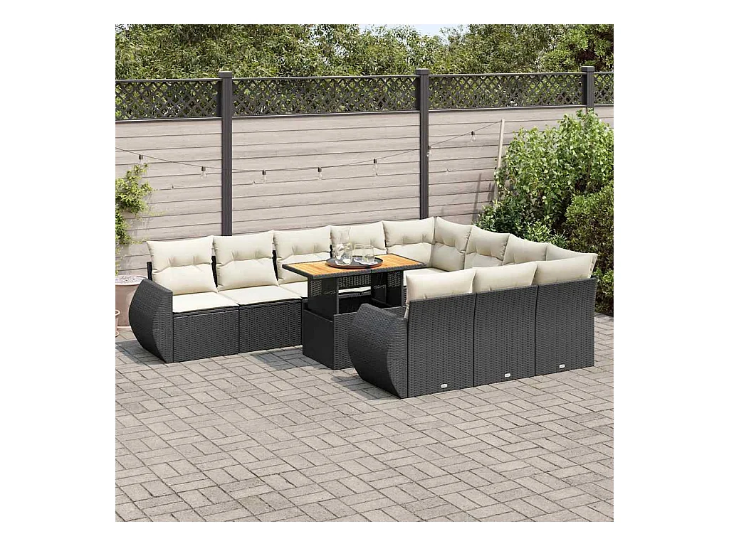11-tlg. Garten-Sofagarnitur mit Kissen Schwarz Poly Rattan