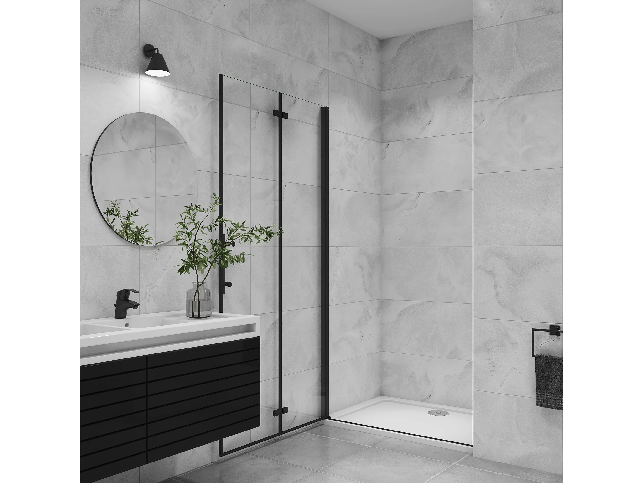 110x195cm 6mm Nano ESG Glas Schwarz Falttür+drehtür+Scharniertür Duschwand Duschabtrennung