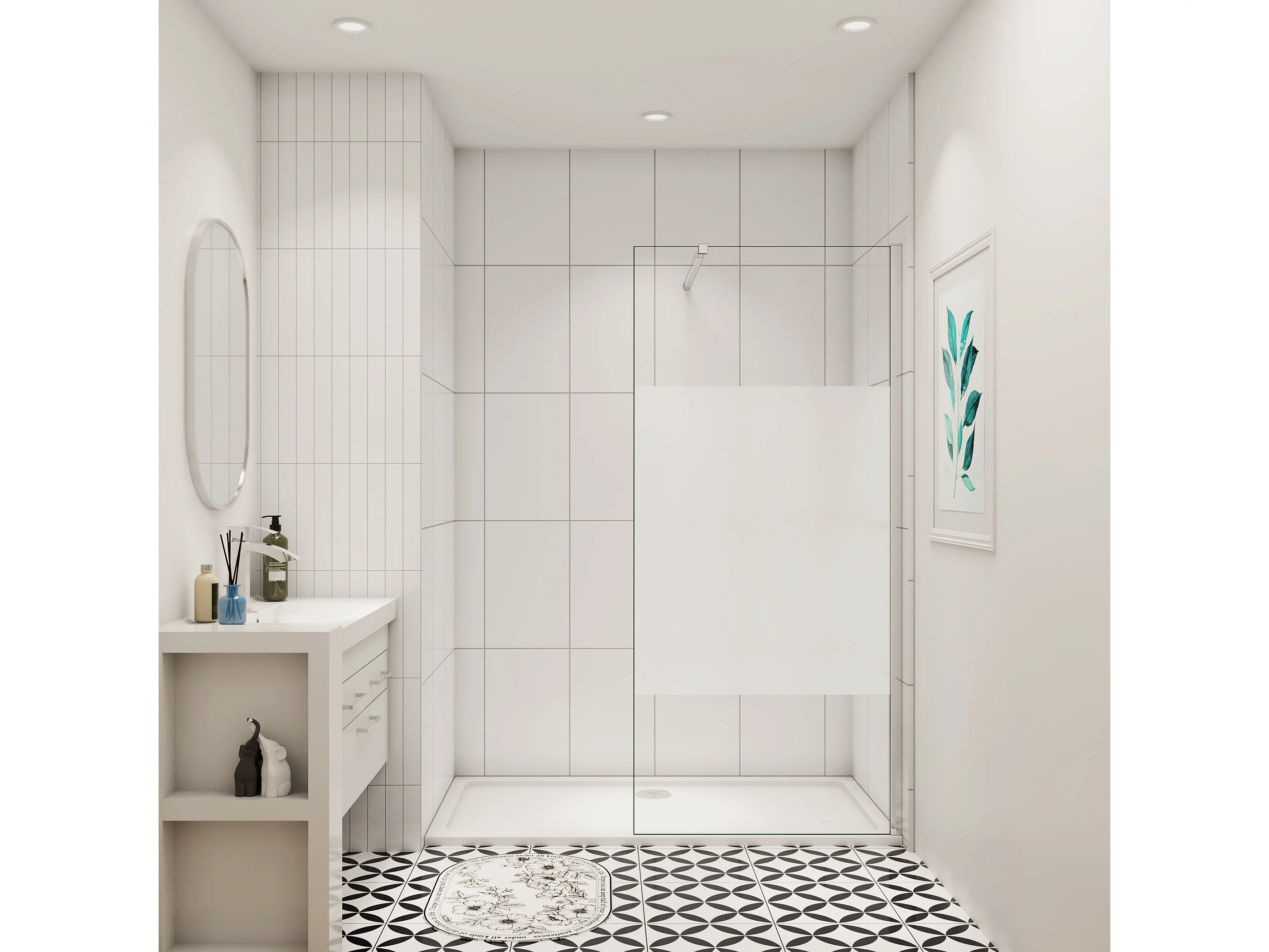 110x200cm Duschabtrennung Walk In 10mm Nano ESG Milchglasstreifen Duschabtrennung + 73-120cm Stabilisator Höhe 200cm