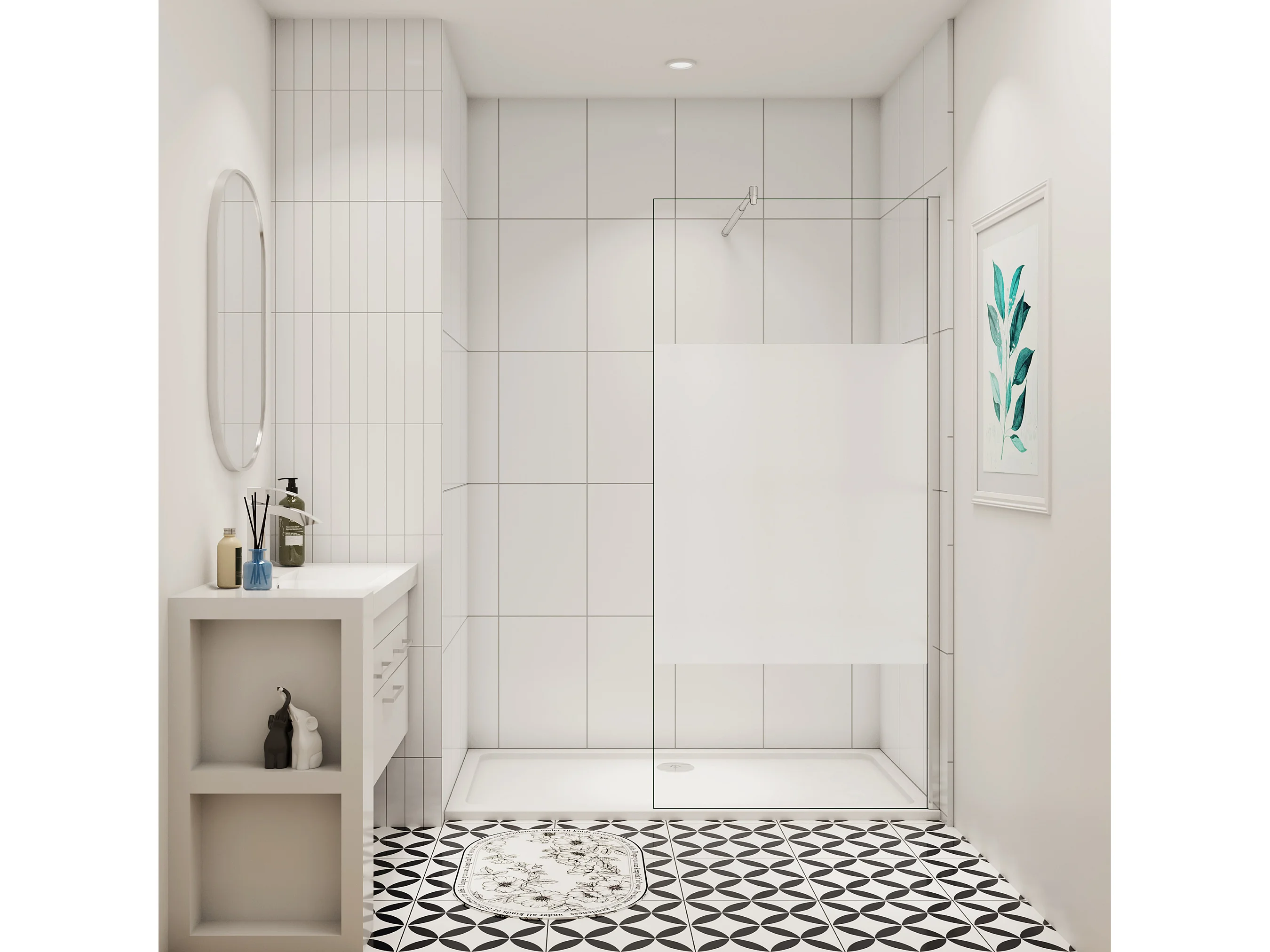 110x200cm Duschabtrennung Walk In 8mm Nano ESG Milchglasstreifen Duschabtrennung + 70-120cm Stabilisator