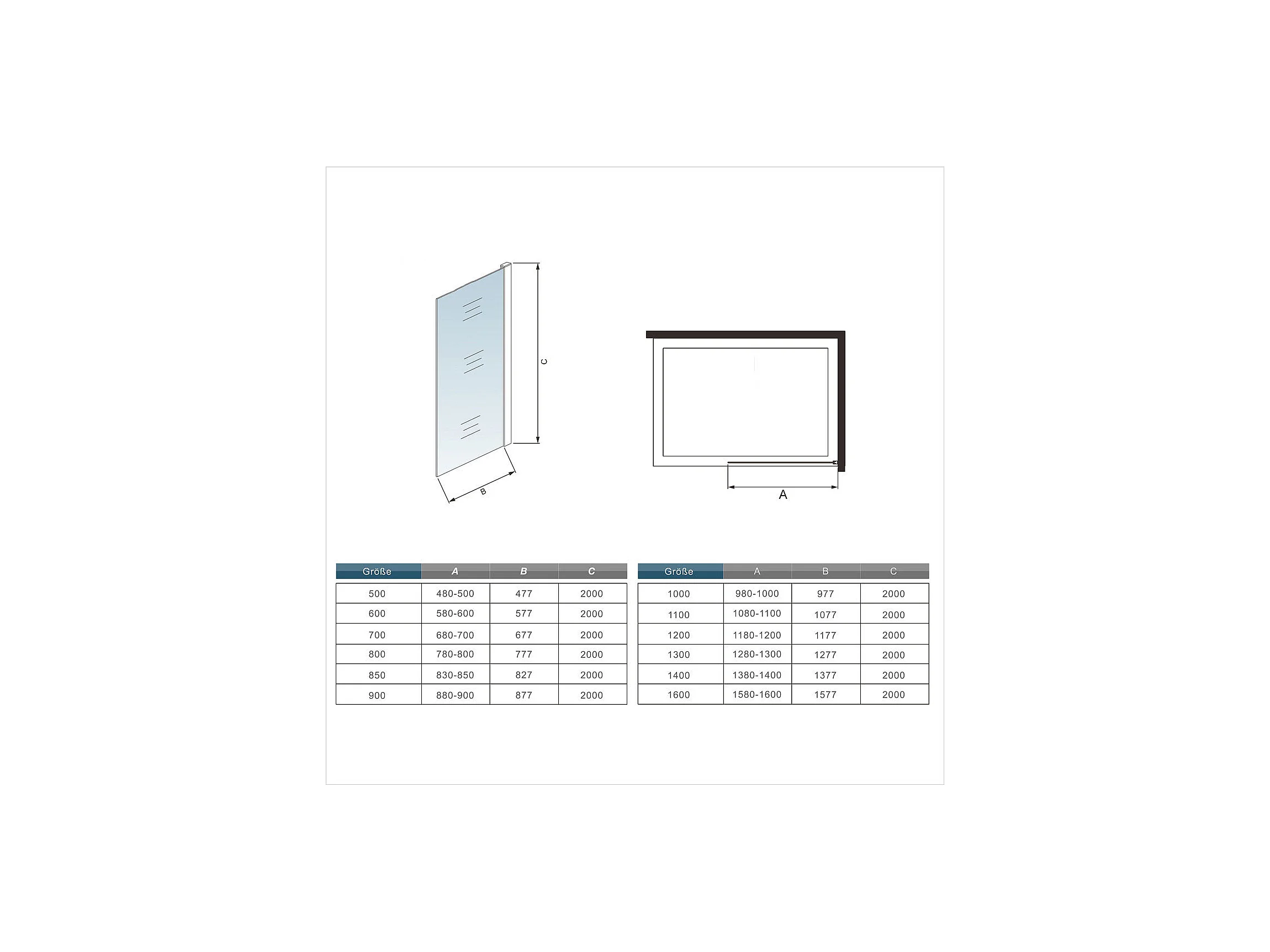 110x200cm+F Form: 90cm Stabilisator 10mm Nano Sicherheitsglas Walk in Duschwand Duschabtrennung Höhe 200cm