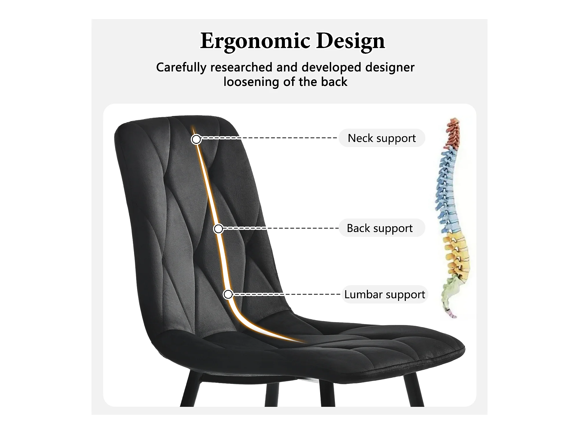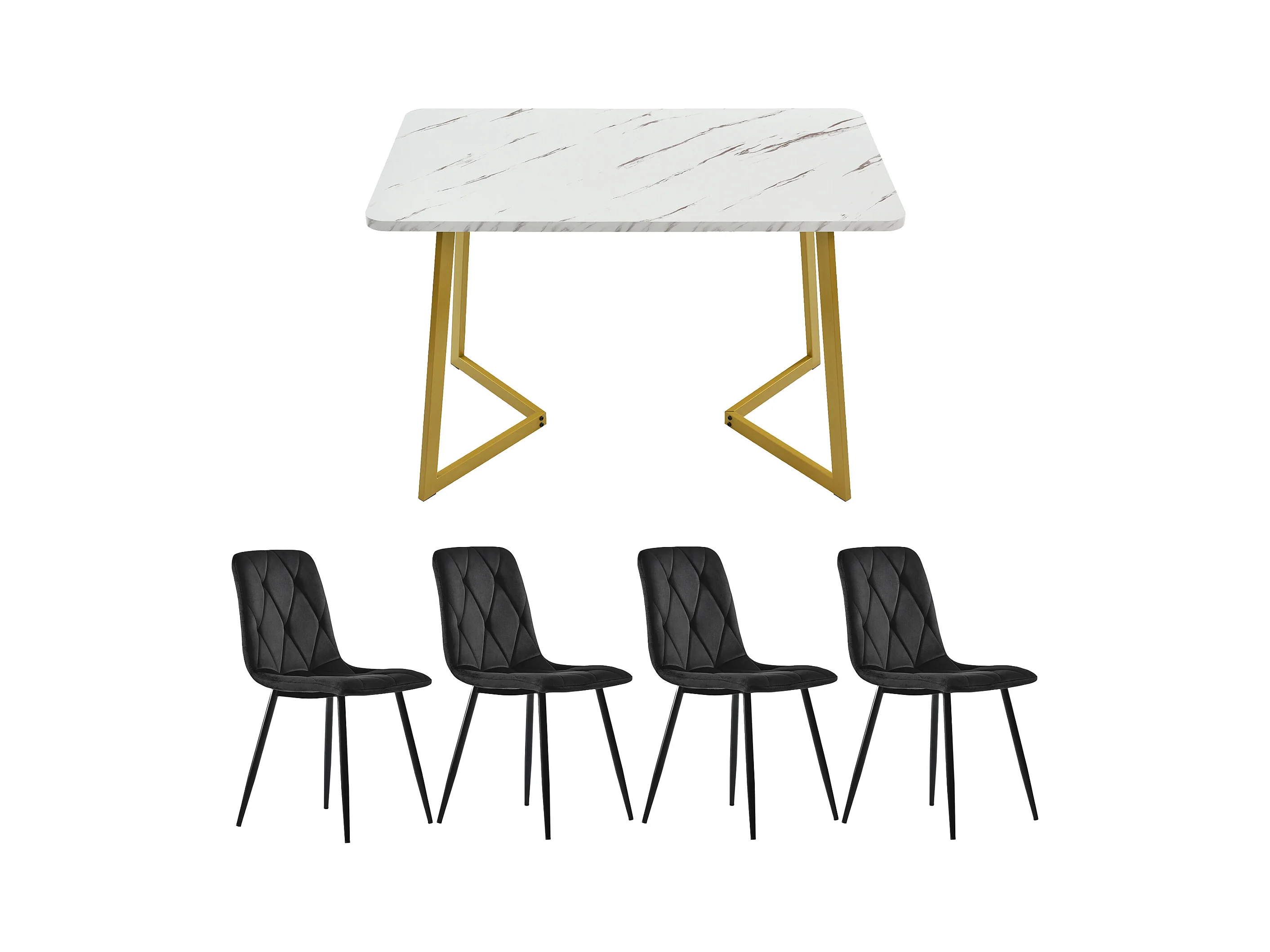 117 x 68 cm Esstisch-Set, rechteckiger Tisch, 4 schwarze Samtstühle, goldene Beine
