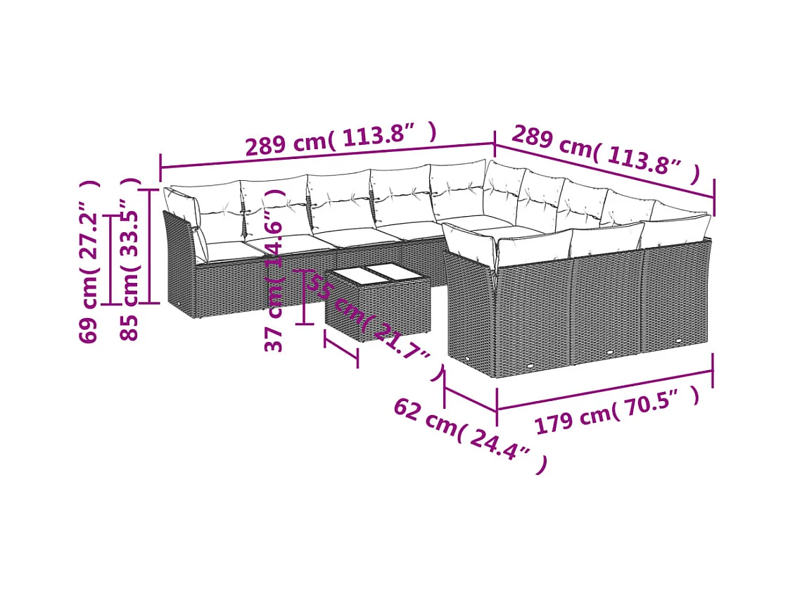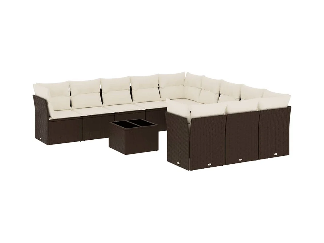 12-tlg. Garten-Sofagarnitur mit Kissen Braun Poly Rattan