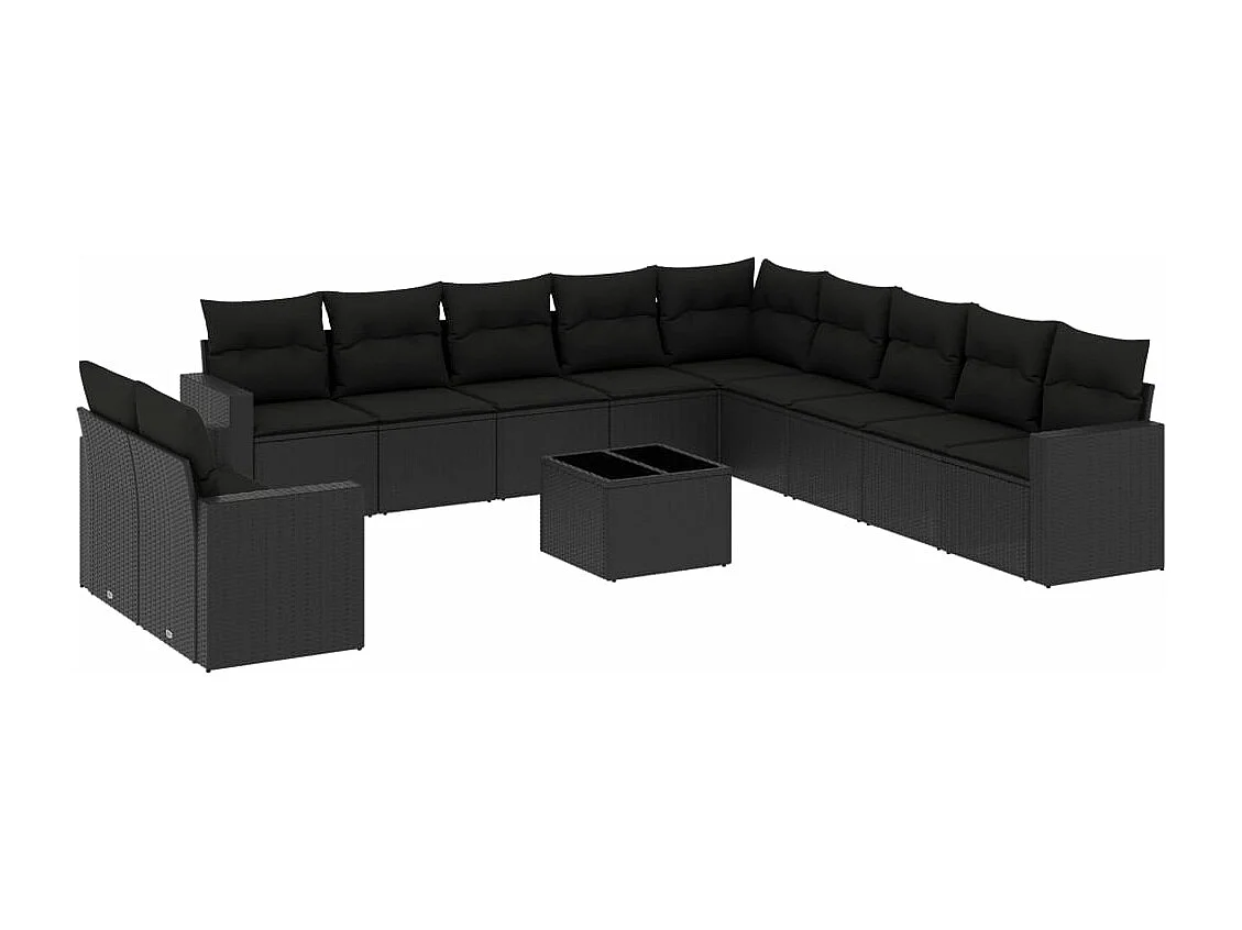 12 Stück Gartenmöbel mit schwarzen geflochtenen Harzkissen
