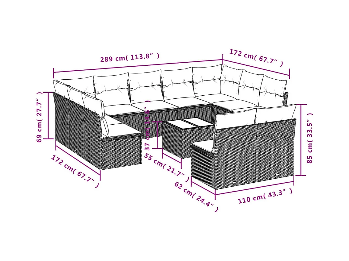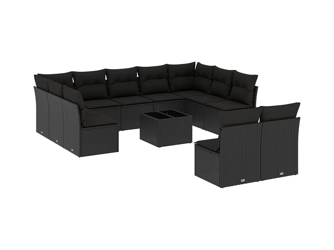 12-tlg. Garten-Sofagarnitur mit Kissen Schwarz Poly Rattan