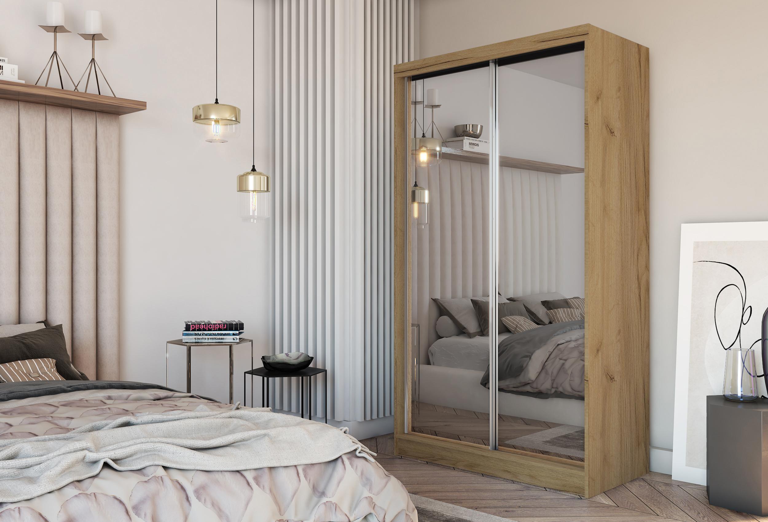 120 cm Kleiderschrank Darix mit Spiegel inklusive 2 Schiebetüren Schwebetürenschrank (Farbe: artisan)