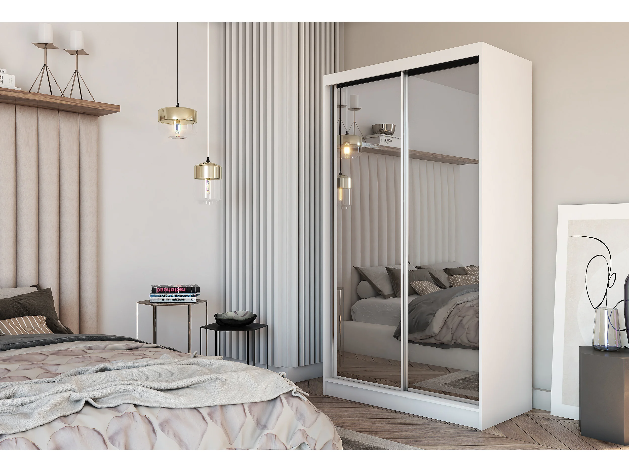 120 cm Kleiderschrank Darix mit Spiegel inklusive 2 Schiebetüren Schwebetürenschrank (Farbe: weiß)