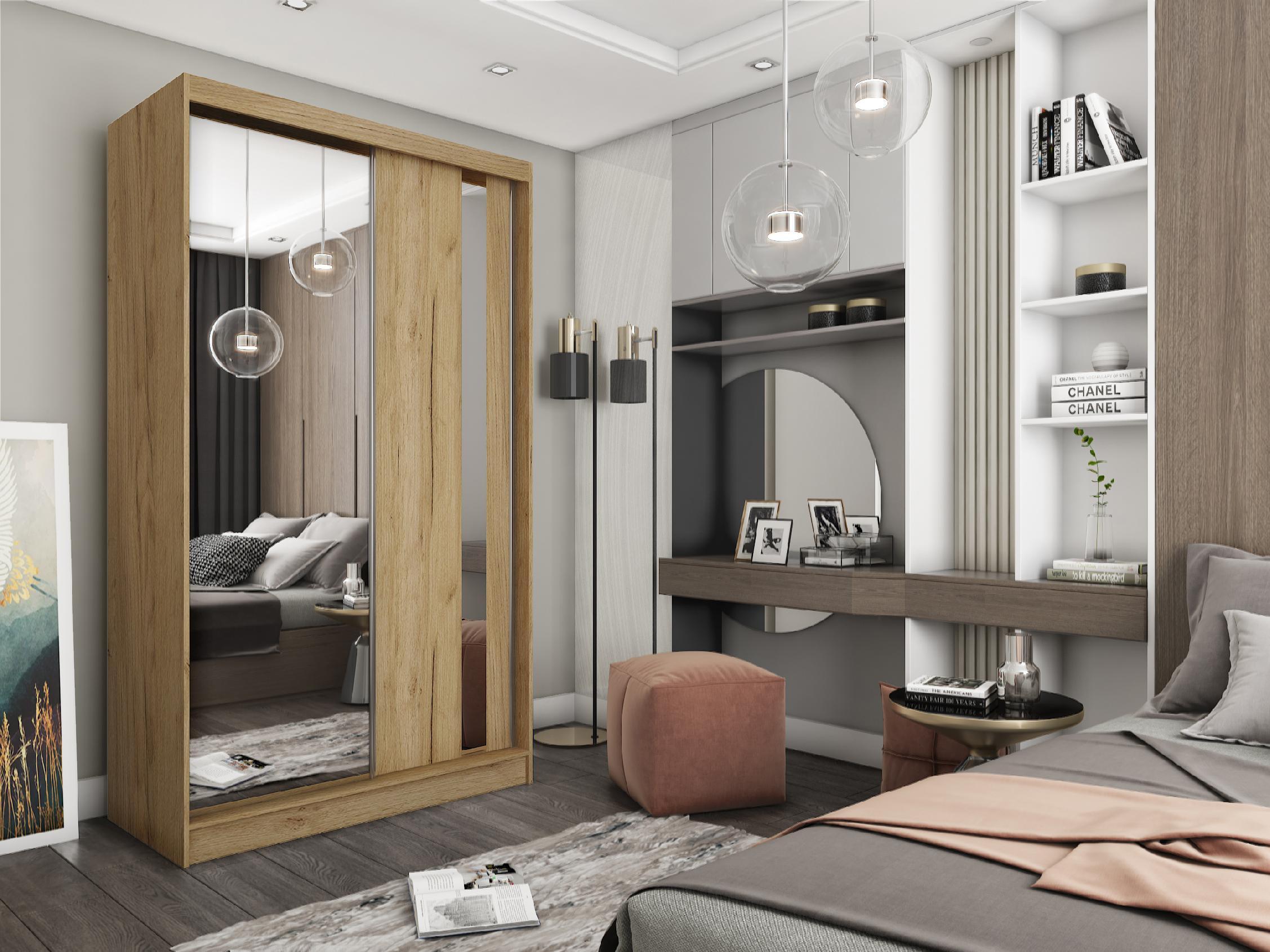 120 cm Kleiderschrank Gabo mit Spiegel inklusive 2 Schiebetüren Schwebetürenschrank (Farbe: artisan)