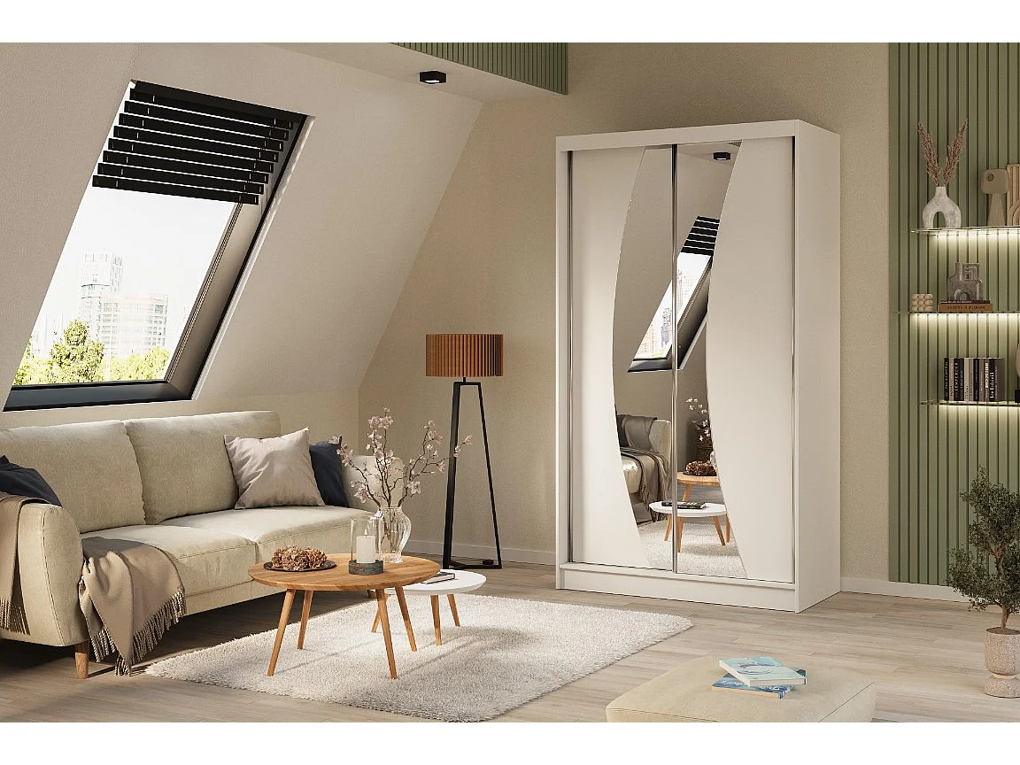 120 cm Kleiderschrank Vex mit Spiegel inklusive 2 Schiebetüren Schwebetürenschrank (Farbe: weiß)